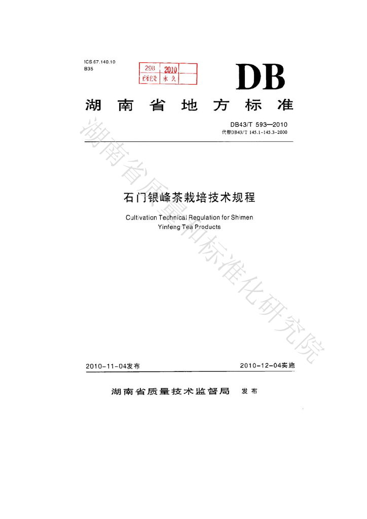 DB43/T 593-2010 石门银峰茶栽培技术规程