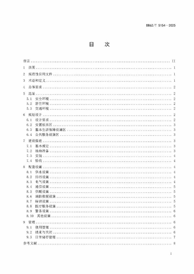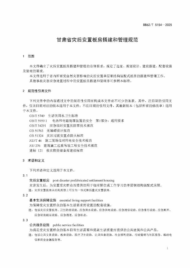 DB62/T 5154-2025 甘肃省灾后安置板房搭建和管理规范