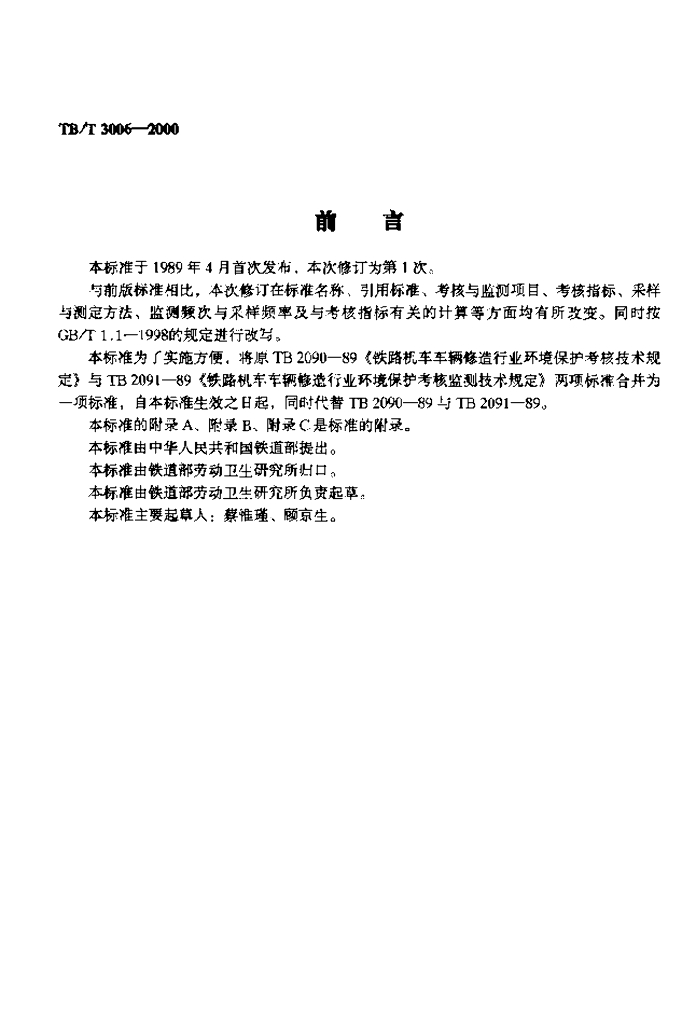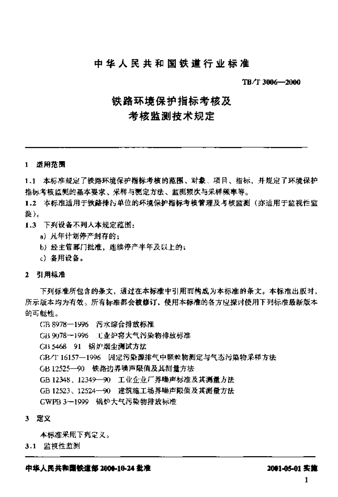 TB/T 3006-2000 铁路环境保护指标考核及考核监测技术规定