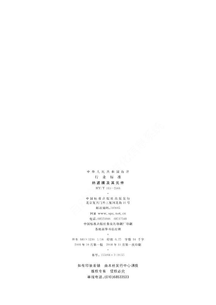 HY/T 113-2008 纳滤膜及其元件