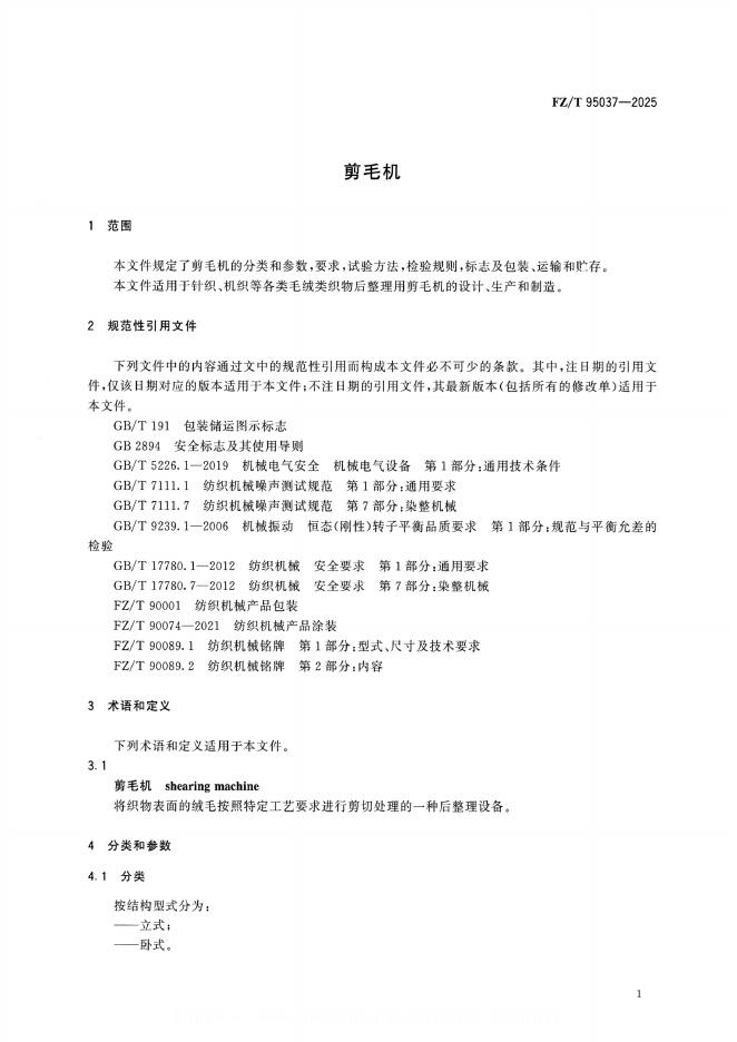 FZ/T 95037-2025 剪毛机