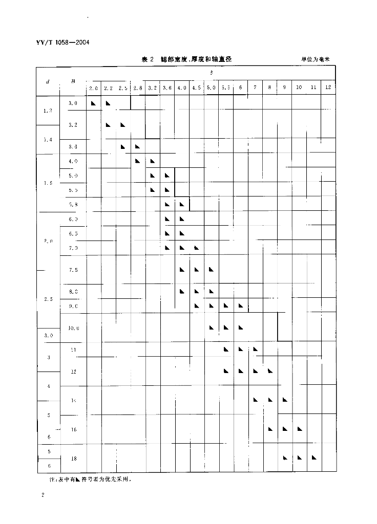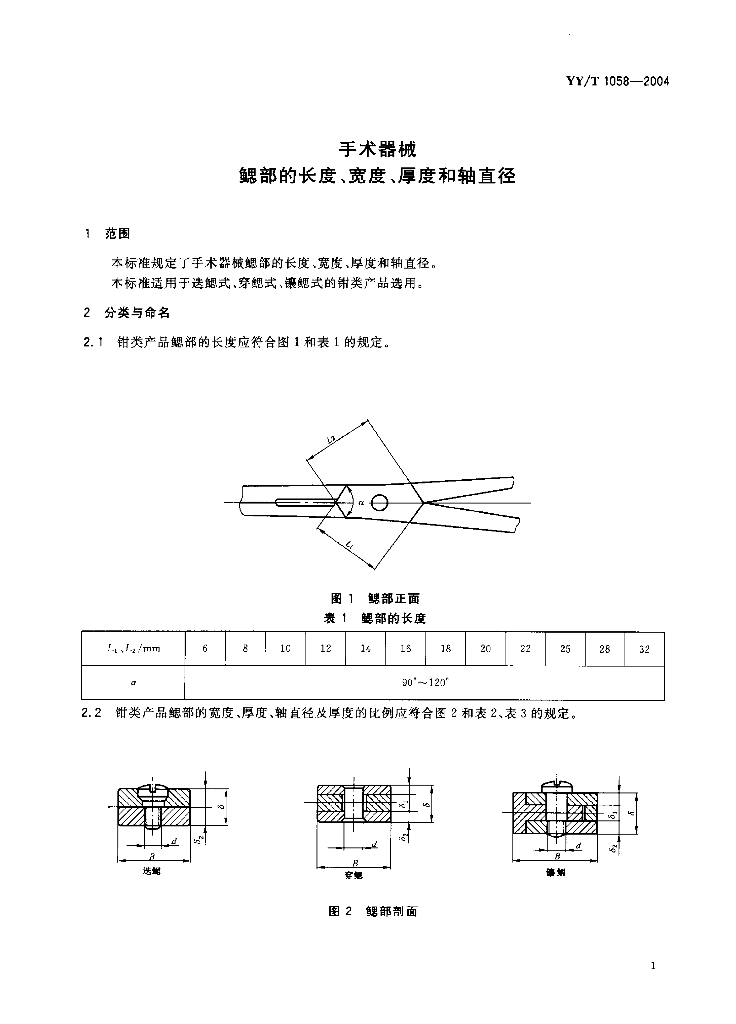 YY/T 1058-2004 手术器械 鳃部的长度、宽度、厚度和轴直径