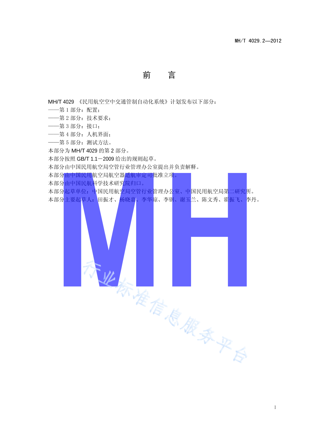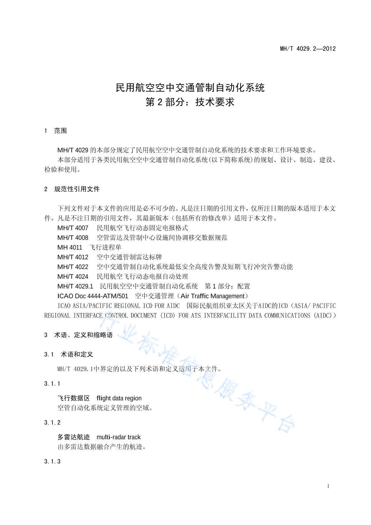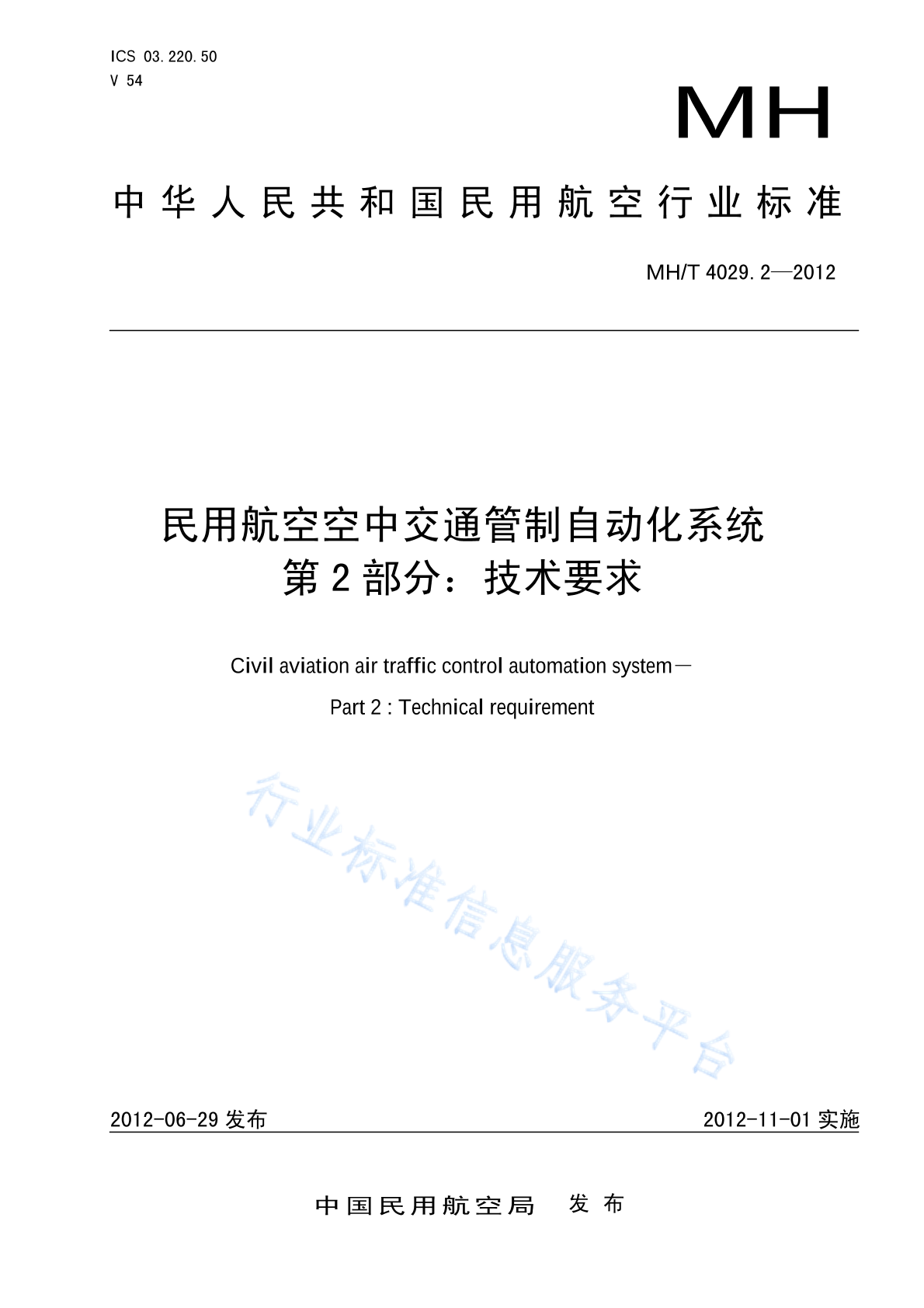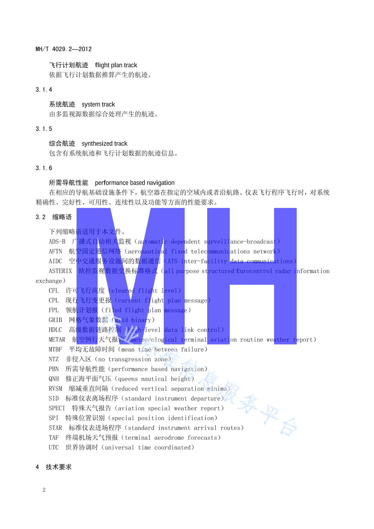 MH/T 4029.2-2012 民用航空空中交通管制自动化系统 第2部分:技术要求