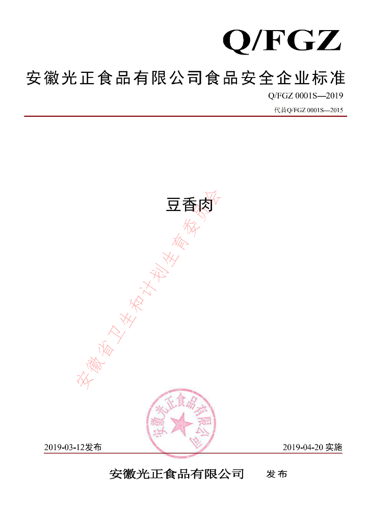 Q/FGZ 0001S-2019 豆香肉