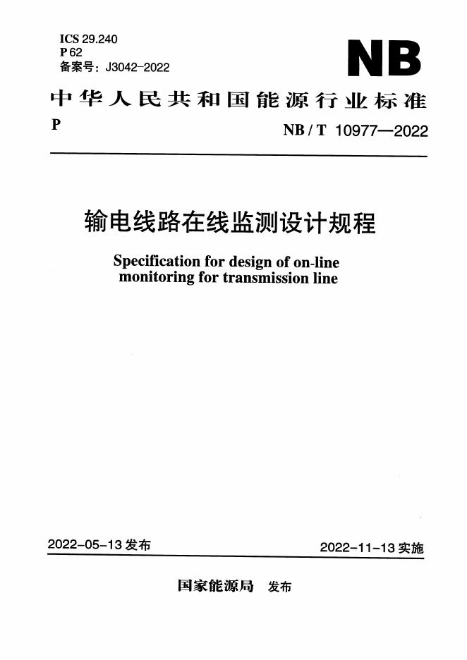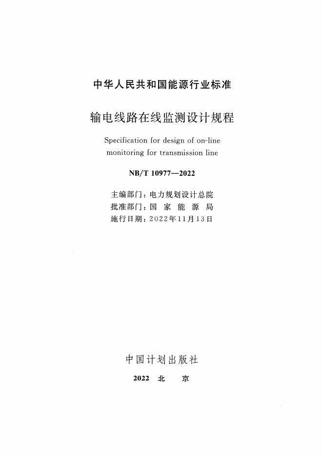 NB/T 10977-2022 输电线路在线监测设计规程(附条文说明)