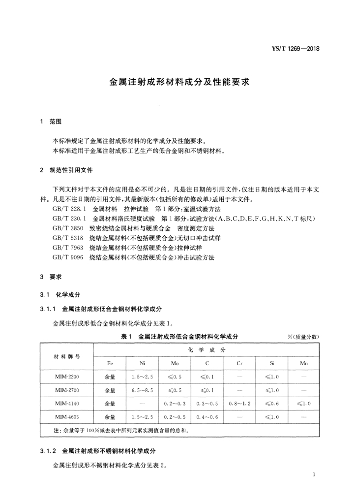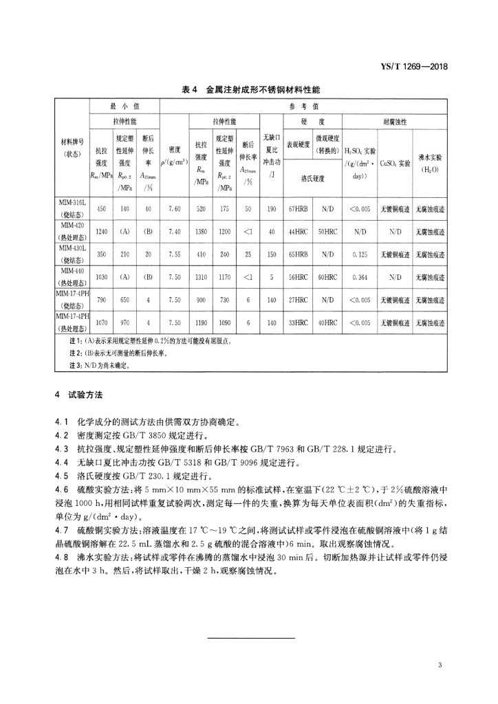 YS/T 1269-2018 金属注射成形材料成分及性能要求