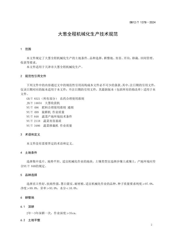DB12/T 1378-2024 大葱全程机械化生产技术规范