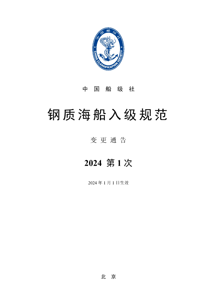 - 12中国船级社CCS:钢质海船入级规范 2024年第1次变更通告