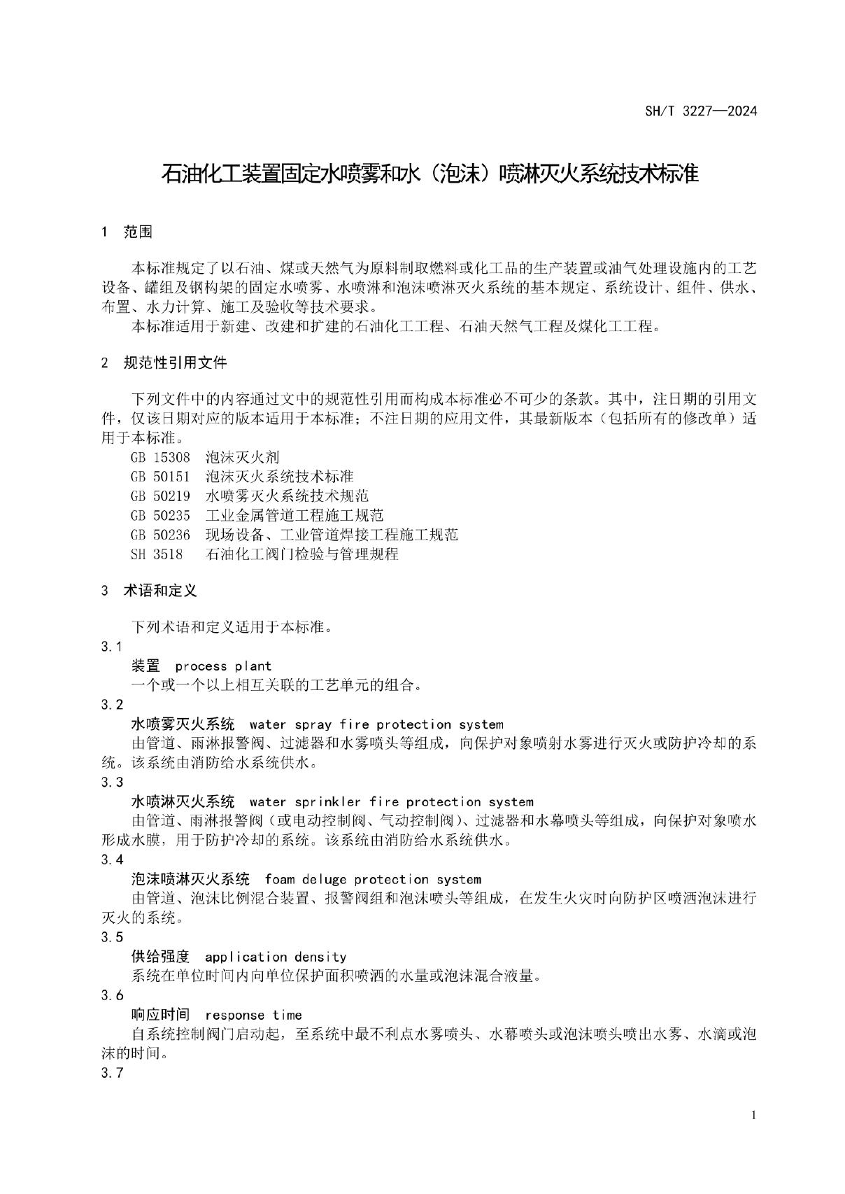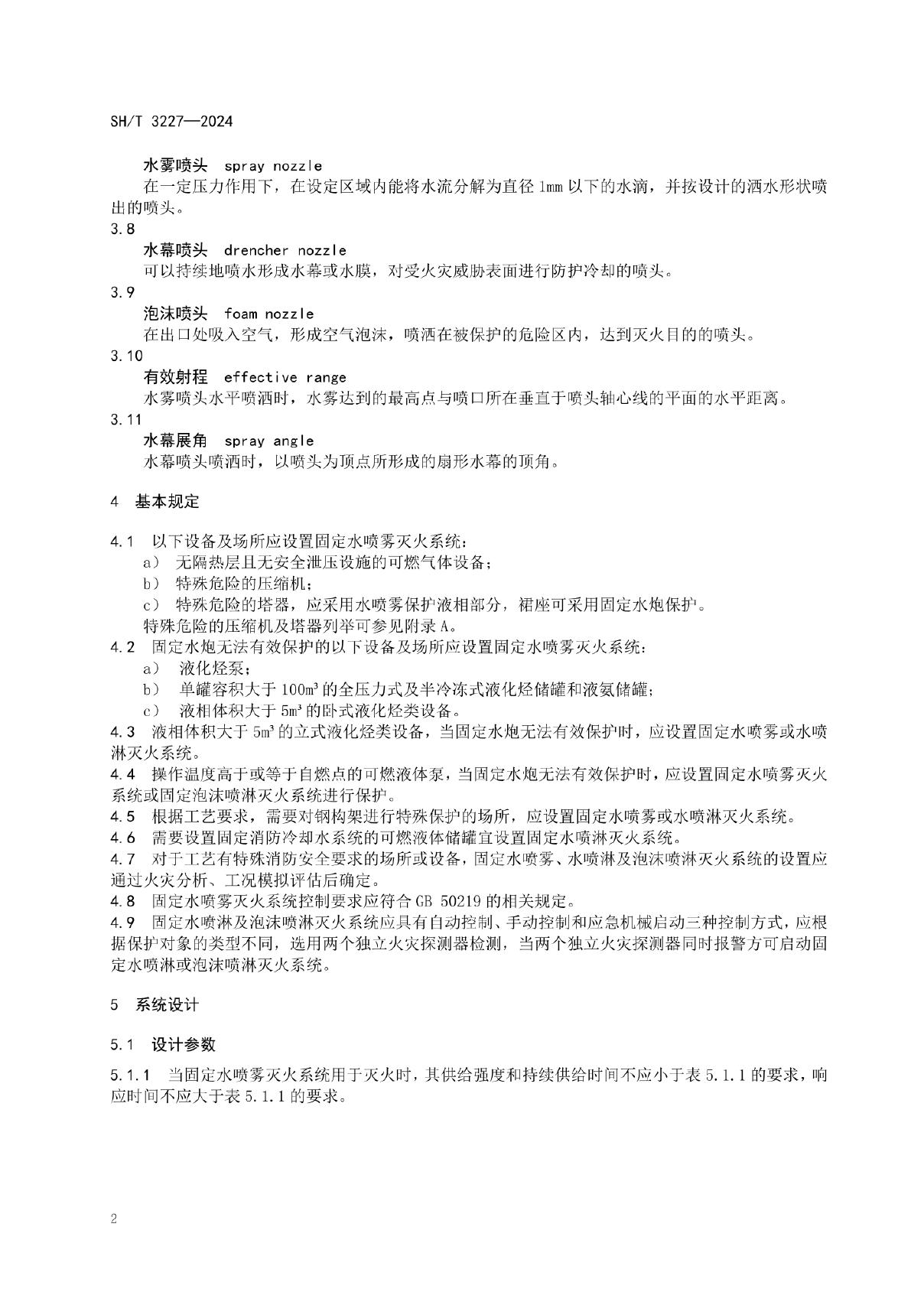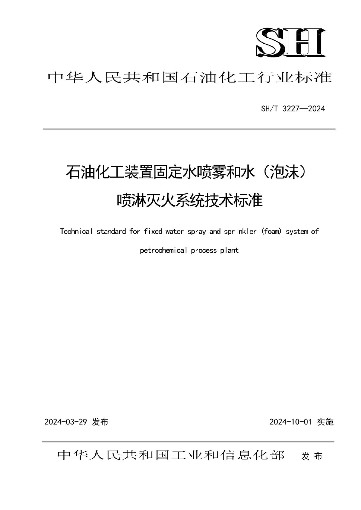 SH/T 3227-2024 石油化工装置固定水喷雾和水(泡沫)喷淋灭火系统技术标准