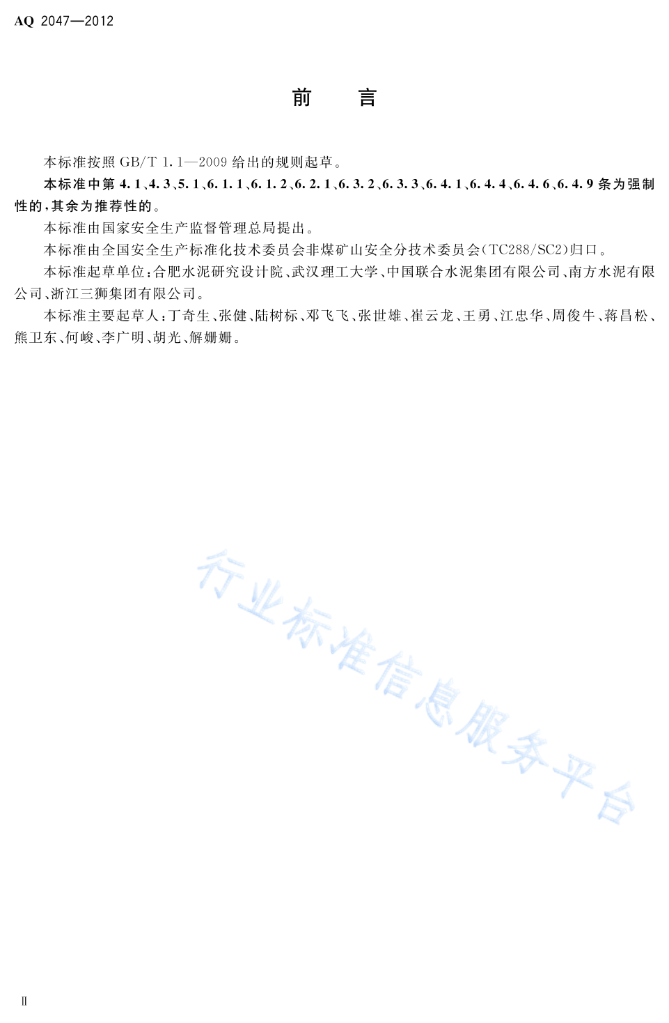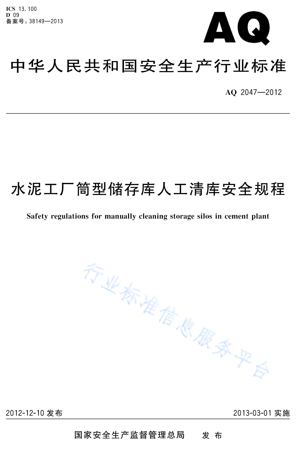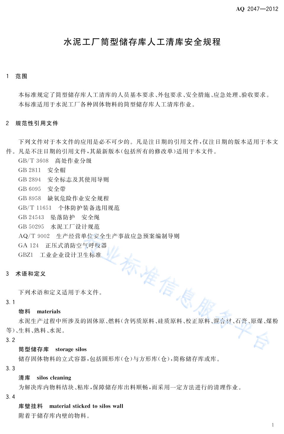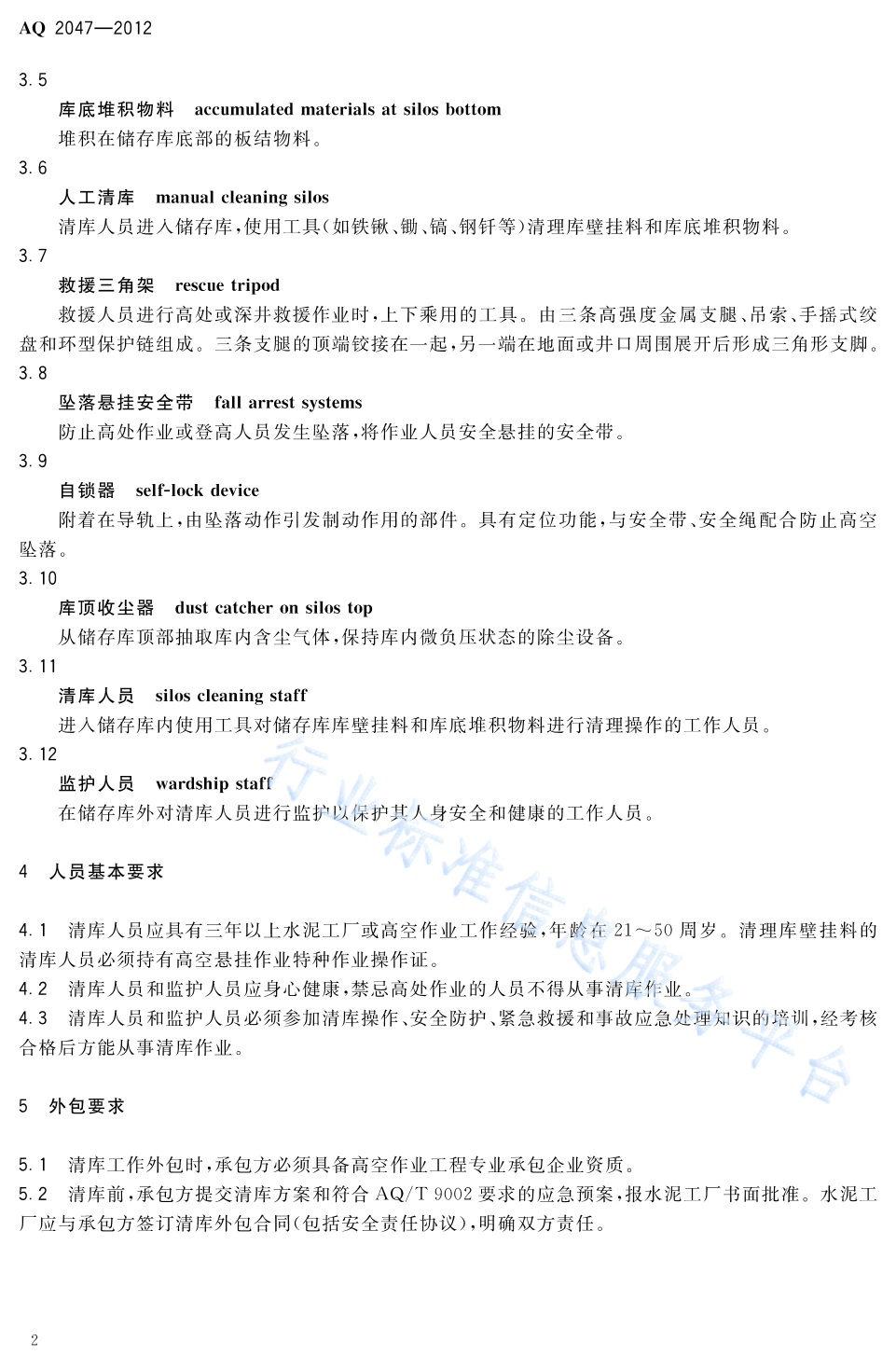 AQ 2047-2012 水泥工厂筒型储运库人工清库安全规程