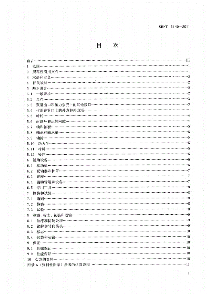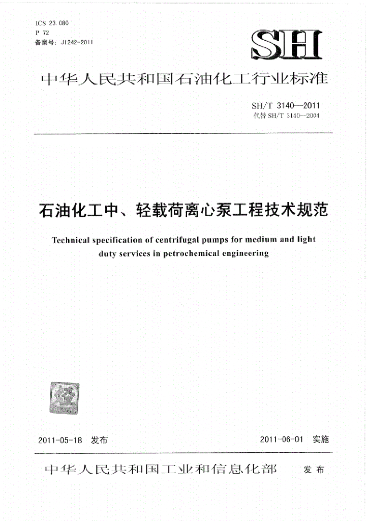 SH/T 3140-2011 石油化工中、轻载荷离心泵工程技术规范
