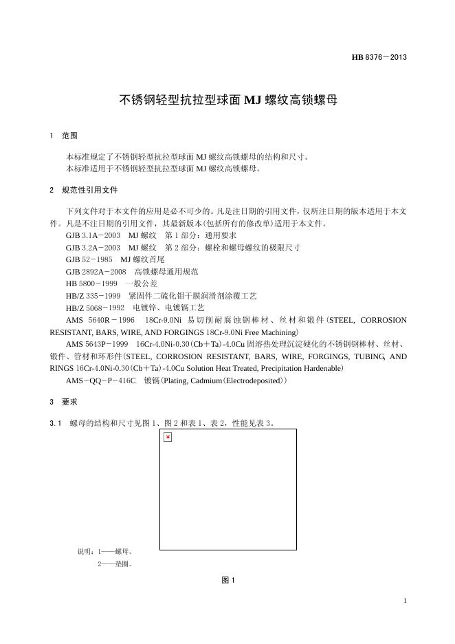 HB 8376-2013(2017) 不锈钢轻型抗拉型球面MJ螺纹高锁螺母