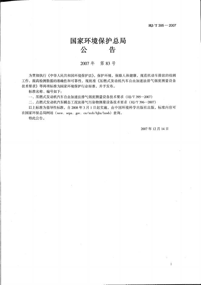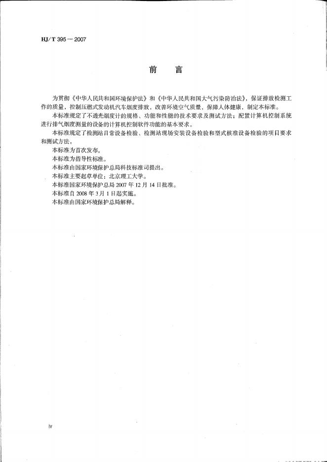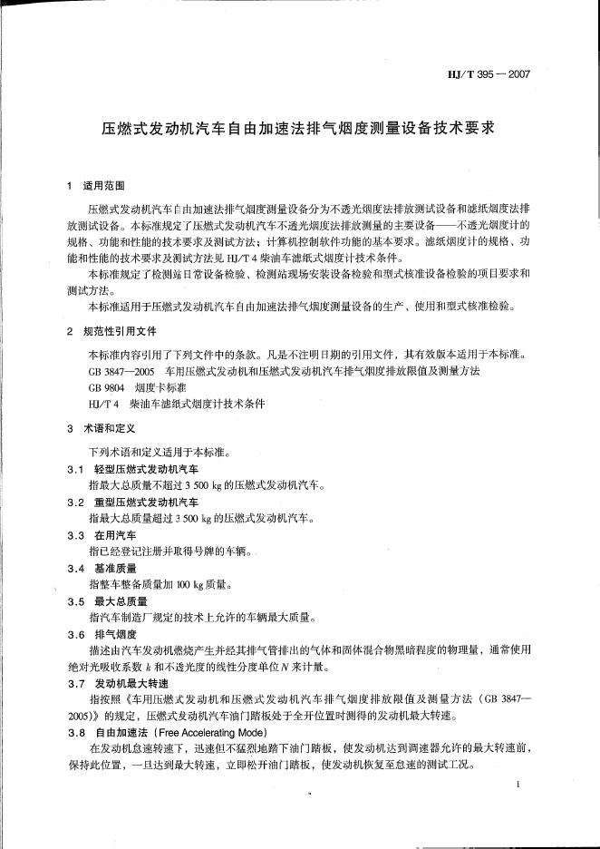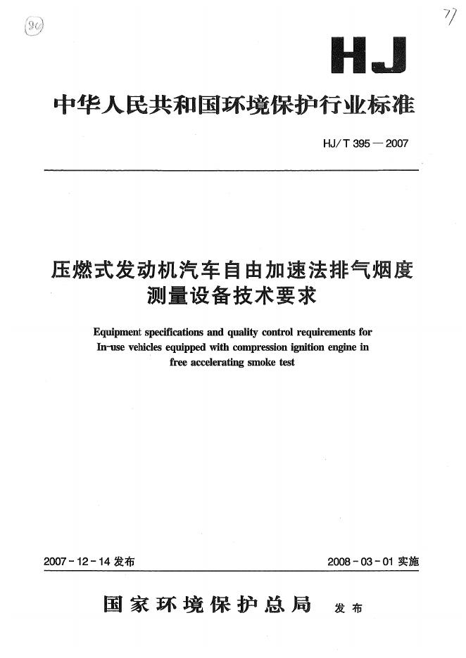 HJ/T 395-2007 压燃式发动机汽车自由加速法排气烟度测量设备技术要求