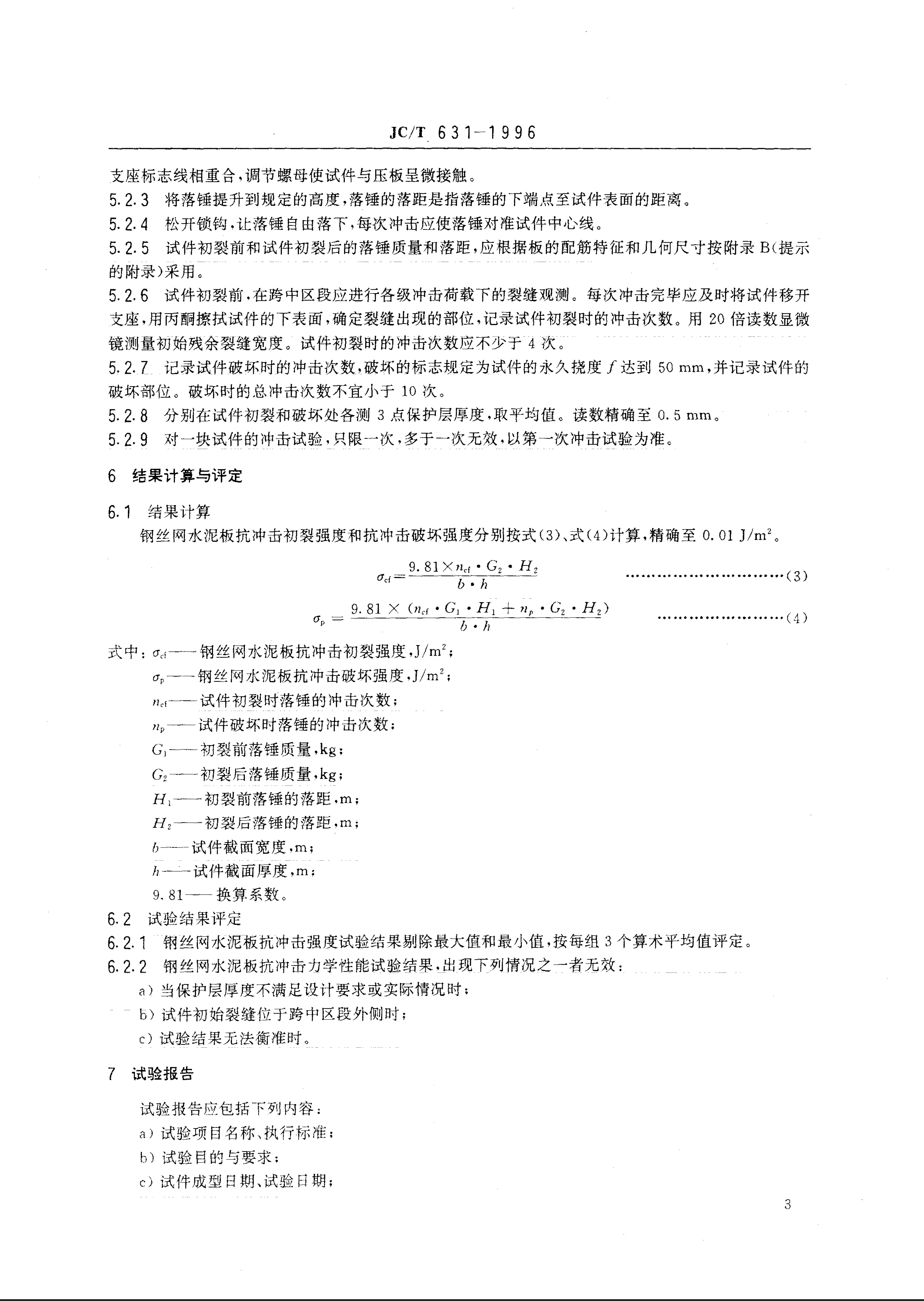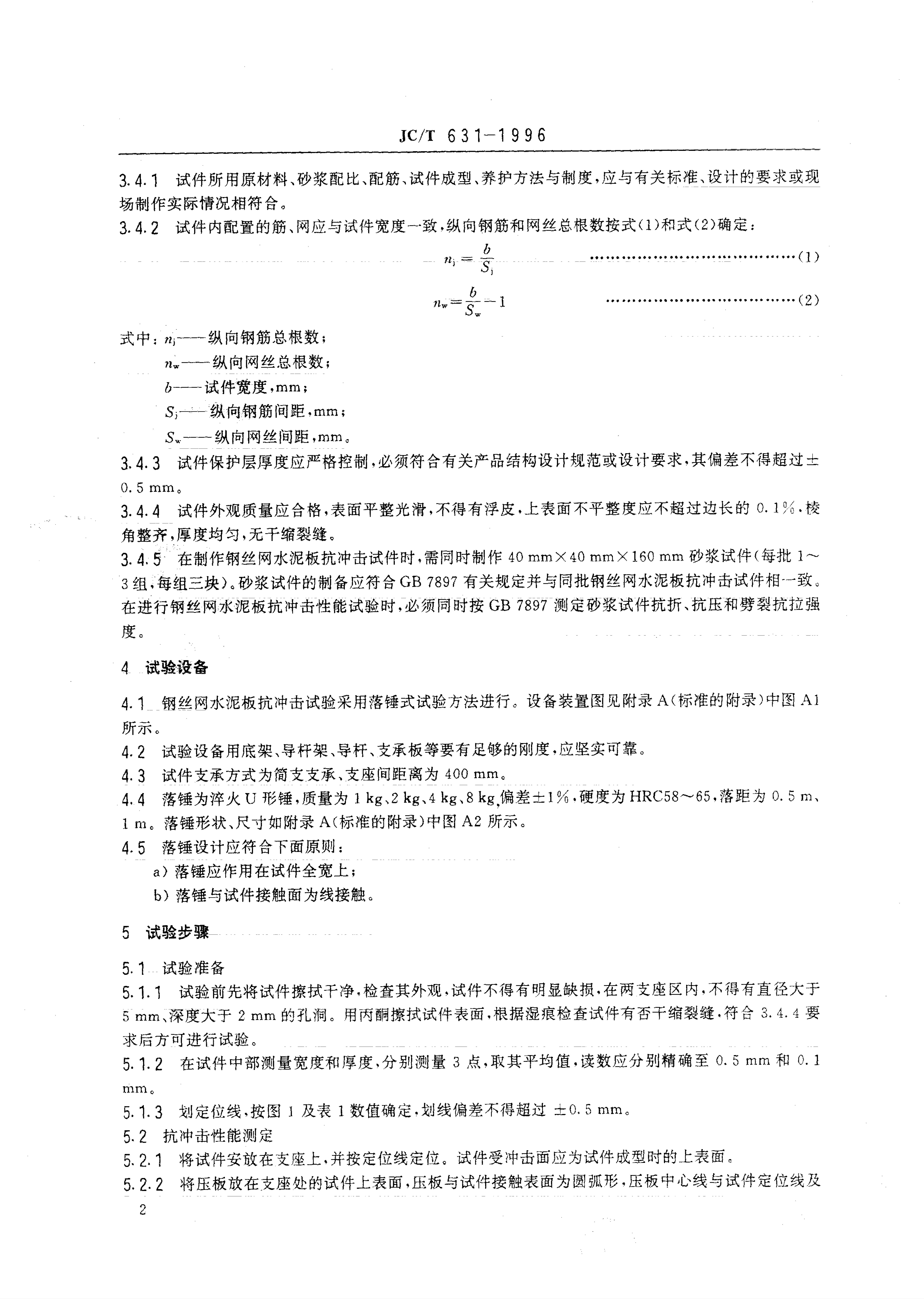 JC/T 0631-1996 钢丝网水泥板抗冲击性能试验方法
