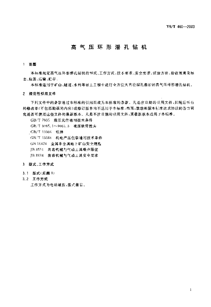 YS/T 460-2003 高气压环形潜孔钻机