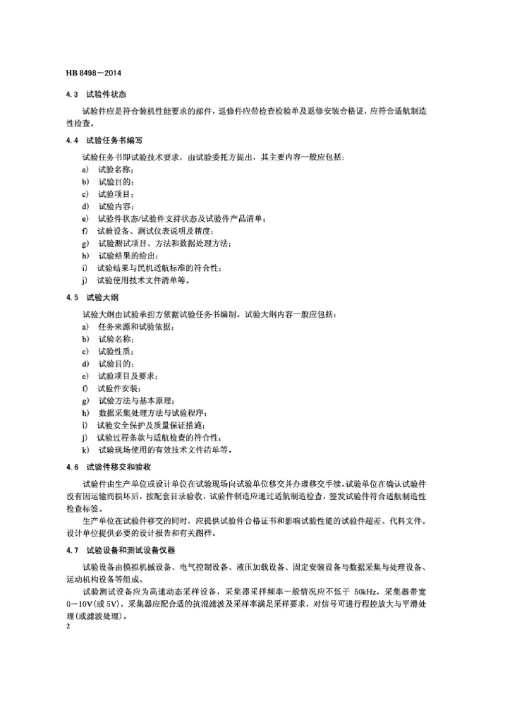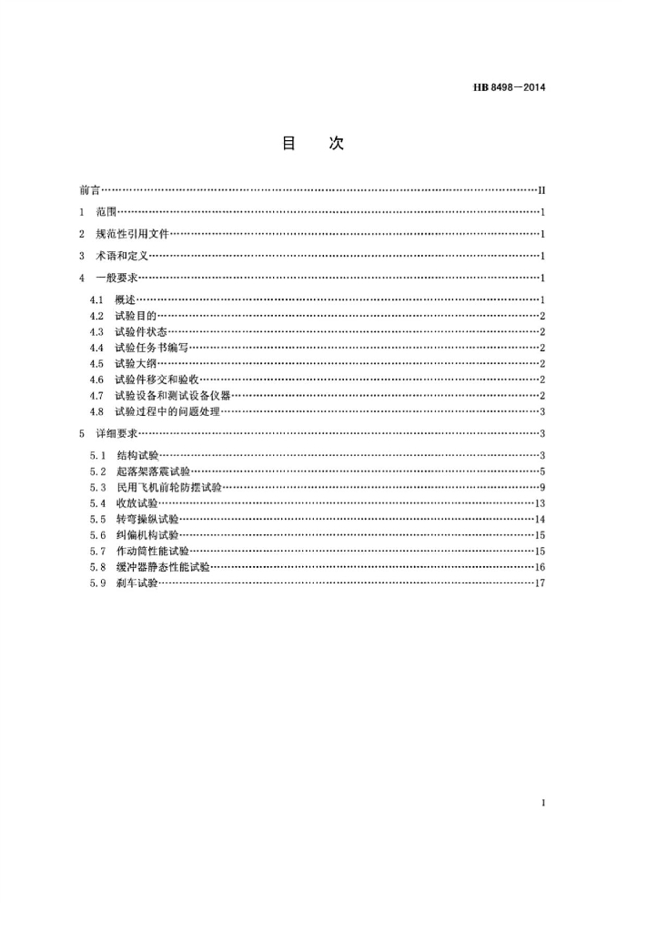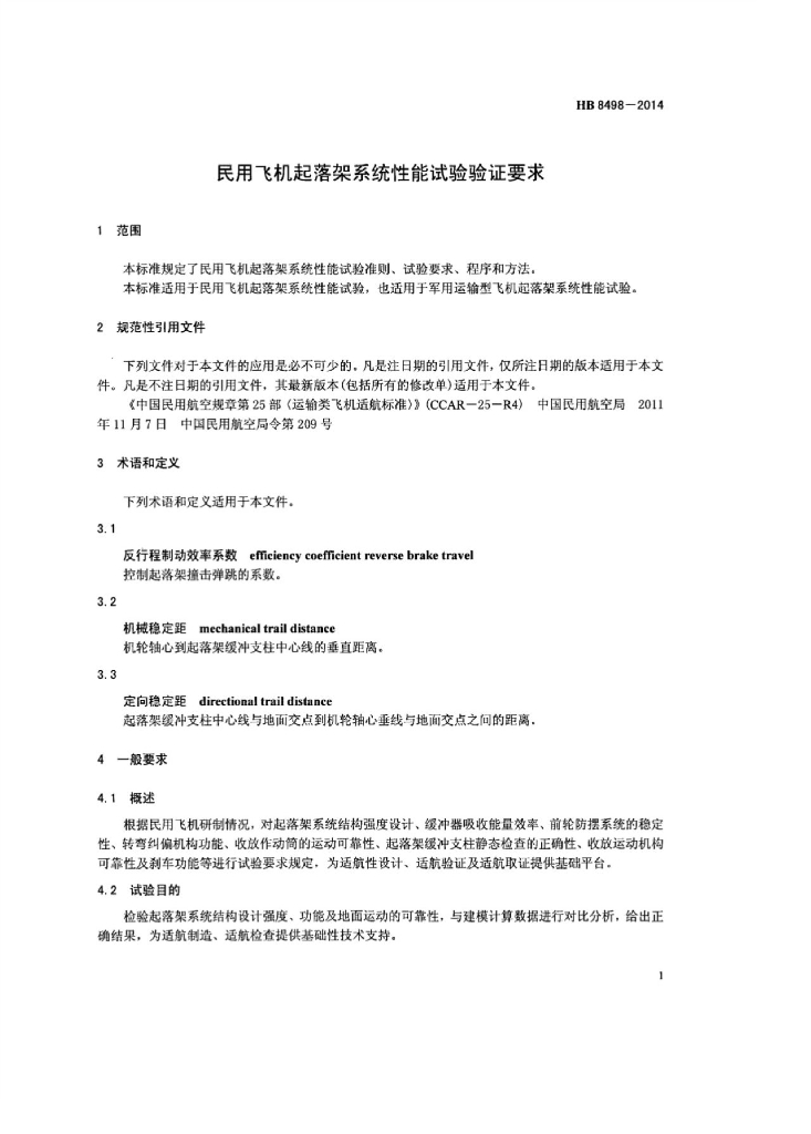 HB 8498-2014 民用飞机起落架系统性能试验验证要求
