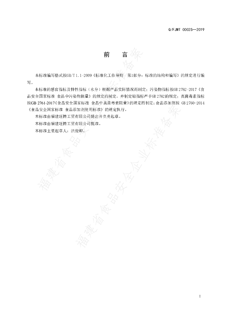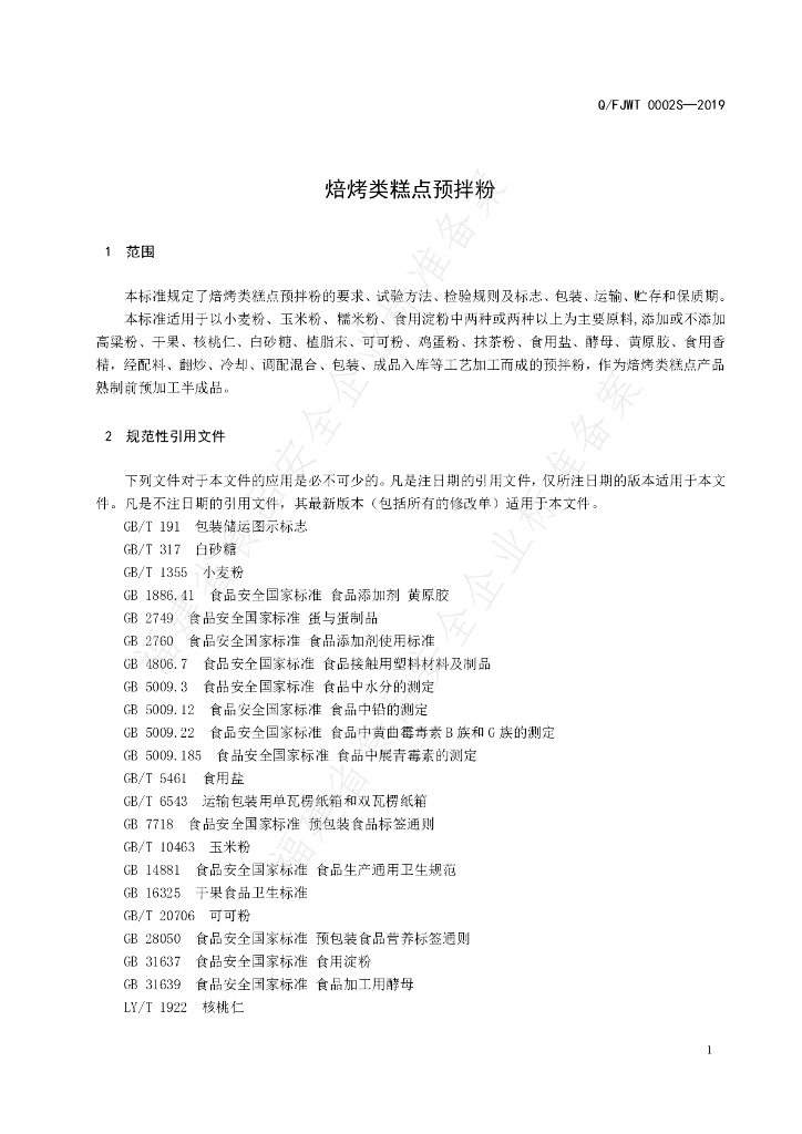 Q/FJWT 0002S-2019 焙烤类糕点预拌粉