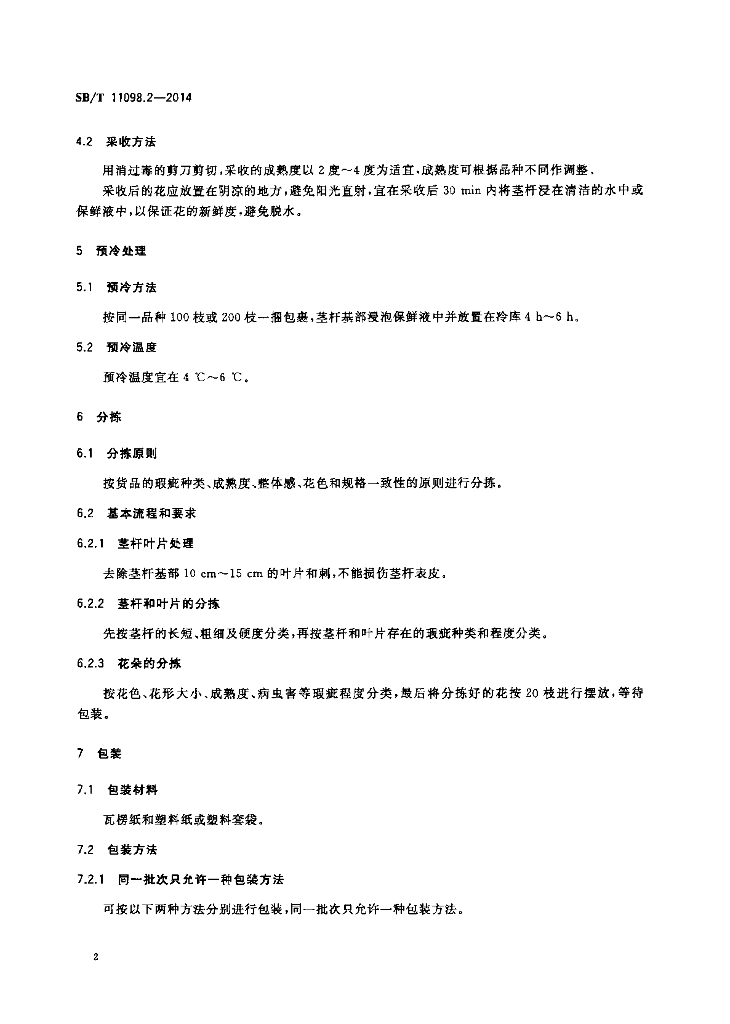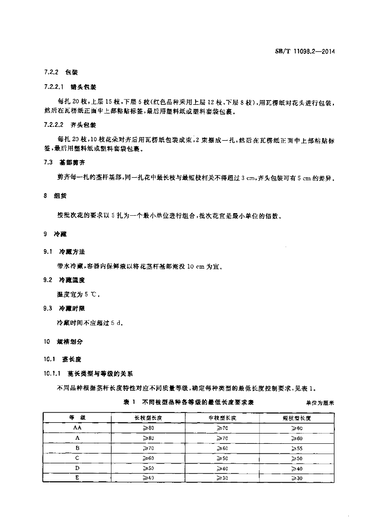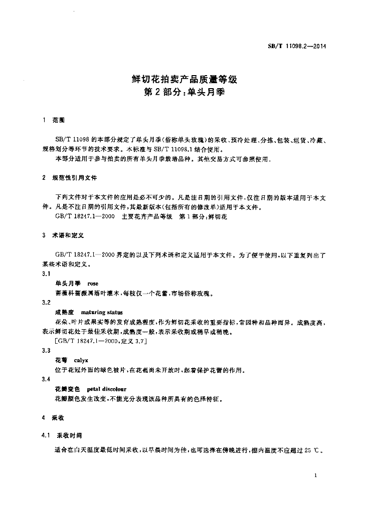 SB/T 11098.2-2014 鲜切花拍卖产品质量等级 第2部分:单头月季