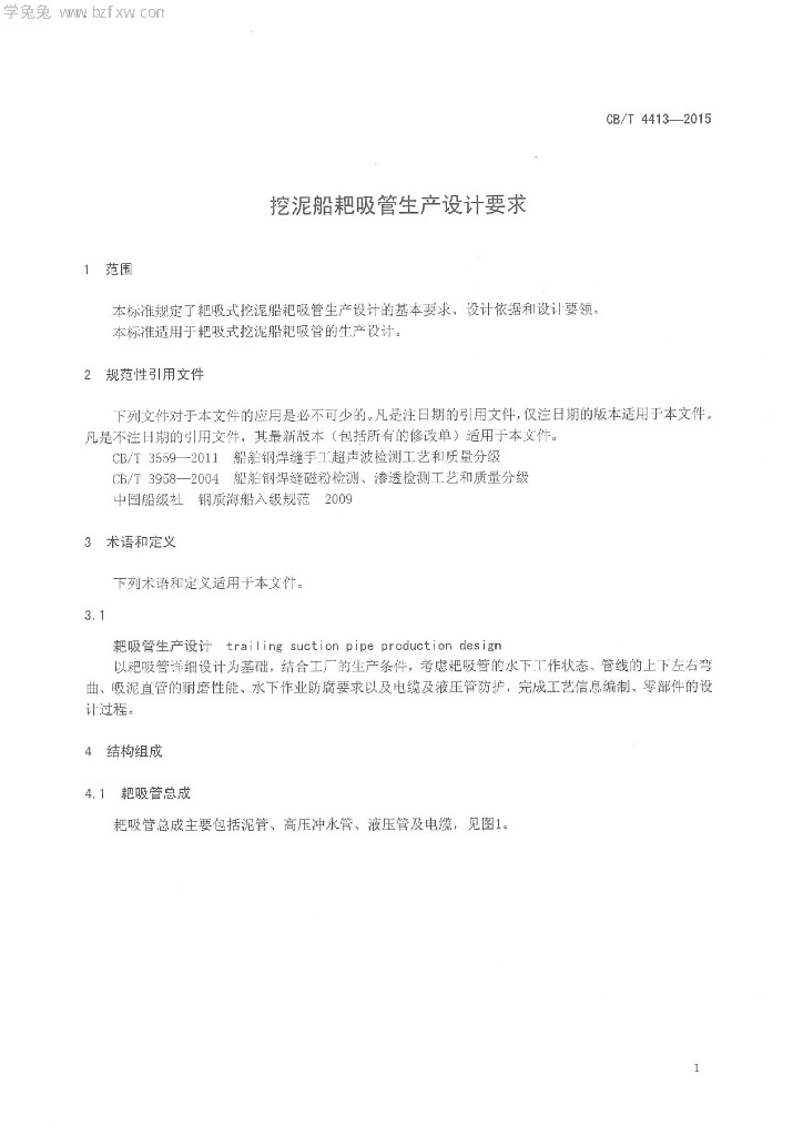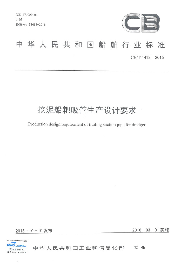 CB/T 4413-2015 挖泥船耙吸管生产设计要求