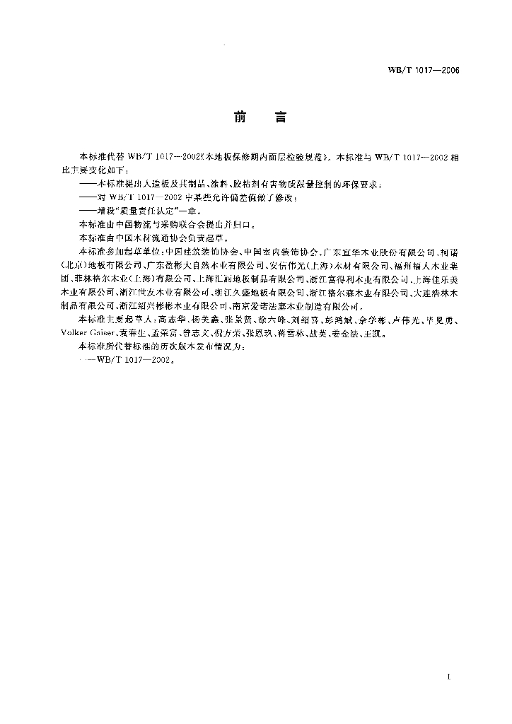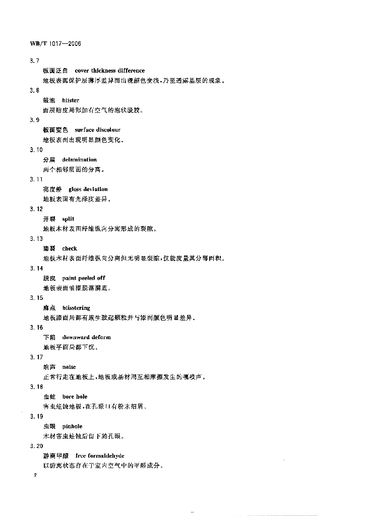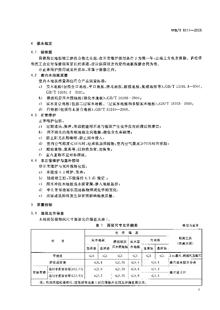 WB/T 1017-2006 木地板保修期内面层检验规范