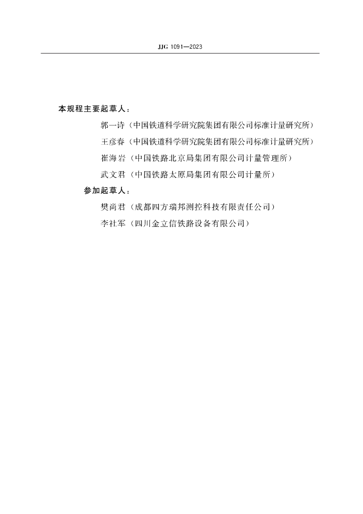 中国铁道科学研究院集团有限公司标准计量研究所、中国铁路北京局集团有限公司计量管理所、中国铁路太原局集团有限公司计量所、成都四方瑞邦测控科技有限责任公司、四川金立信铁路设备有限公司