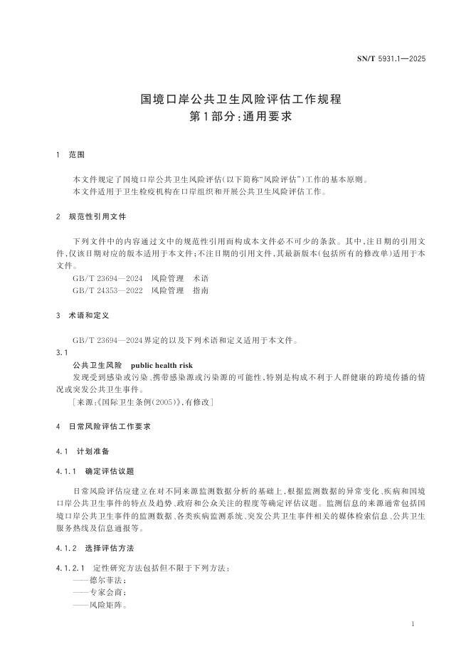 SN/T 5931.1-2025 国境口岸公共卫生风险评估工作规程 第1部分:通用要求