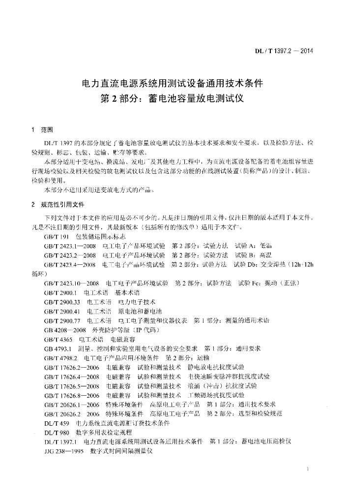 DL/T 1397.2-2014 电力直流电源系统用测试设备通用技术条件 第2部分:蓄电池容量放电测试仪