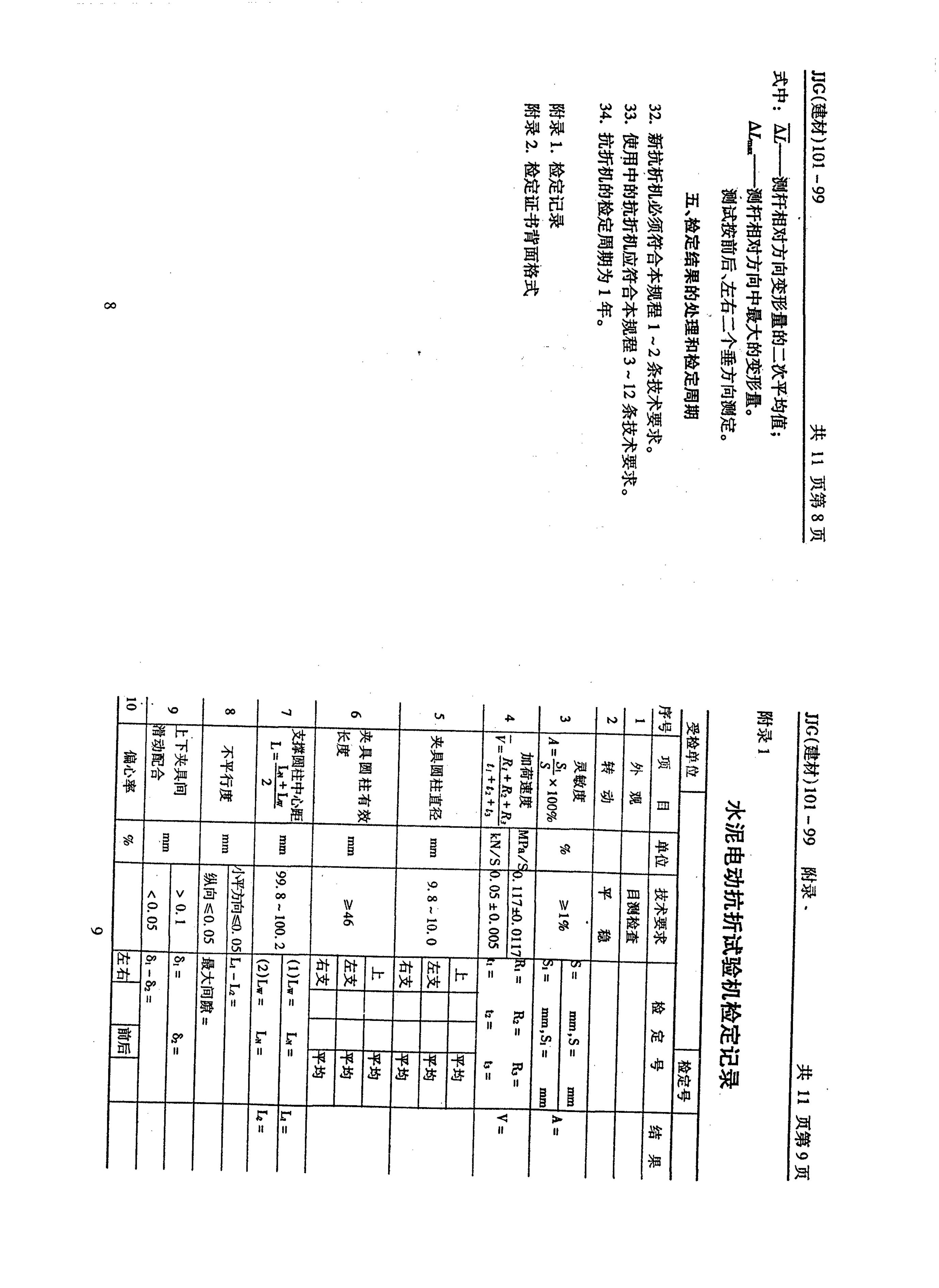 JJG(建材)101-1999 水泥电动抗折试验机检定规程
