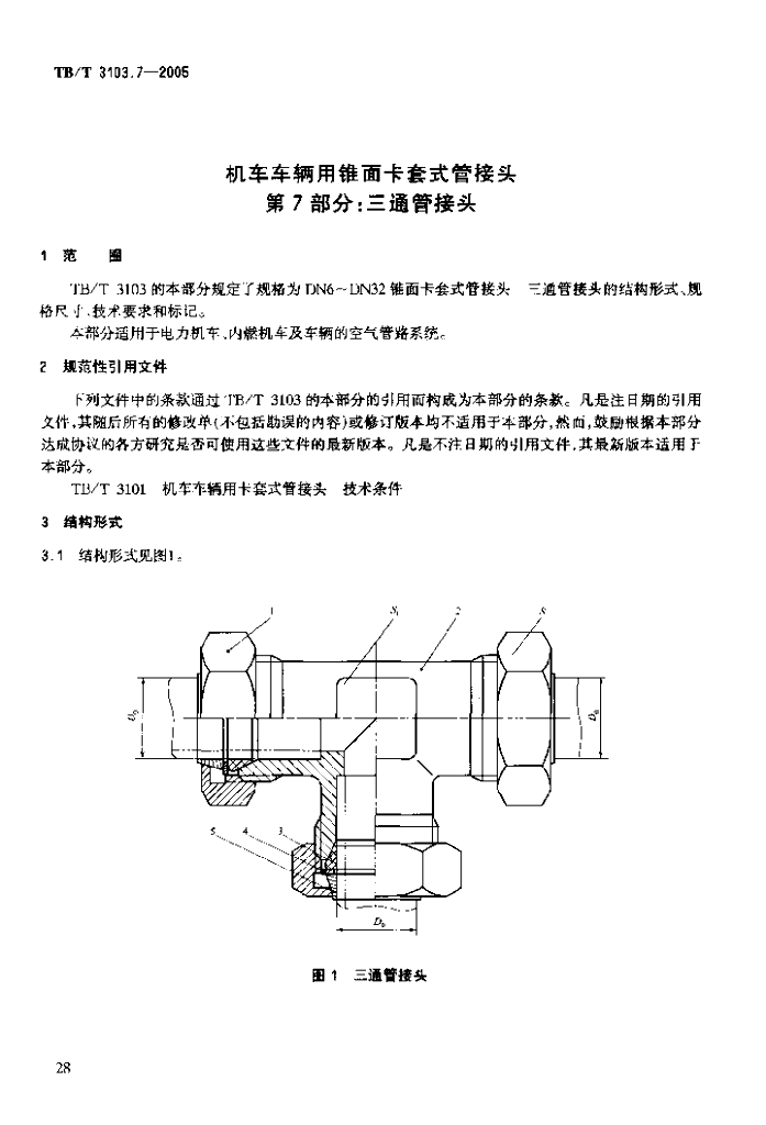 TB/T 3103.7-2005 机车车辆用锥面卡套式管接头 第7部分:三通管接头