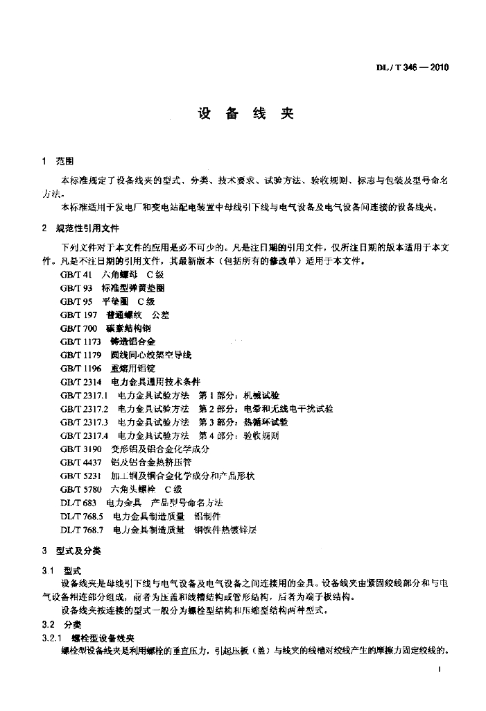 DL/T 346-2010 设备线夹