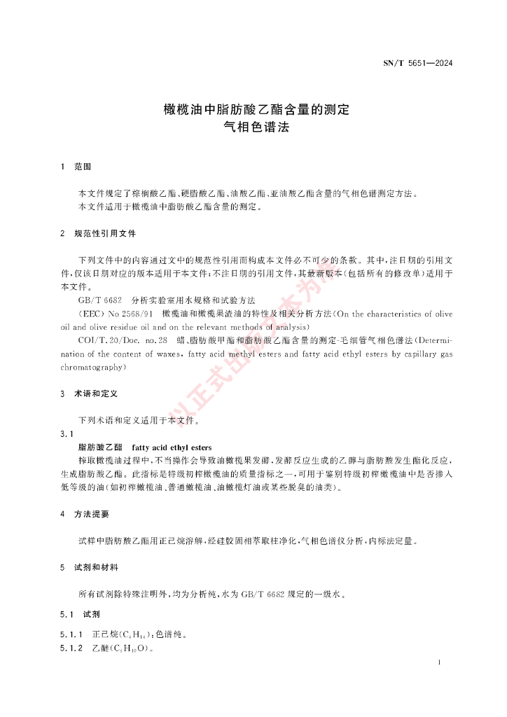 SN/T 5651-2024 橄榄油中脂肪酸乙酯含量的测定 气相色谱法