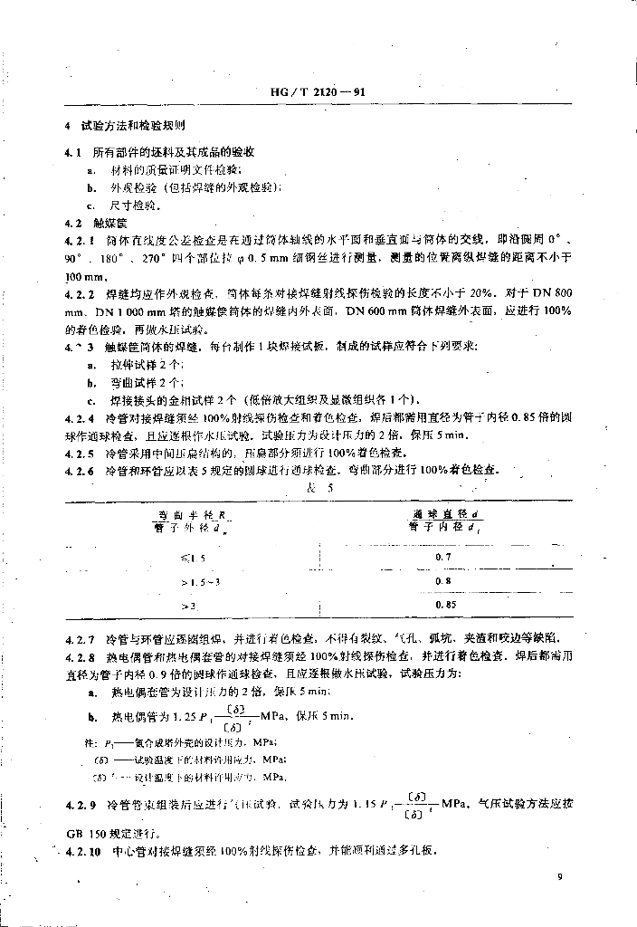 HG/T 2120-1991 氨合成塔单管并流式内件技术条件