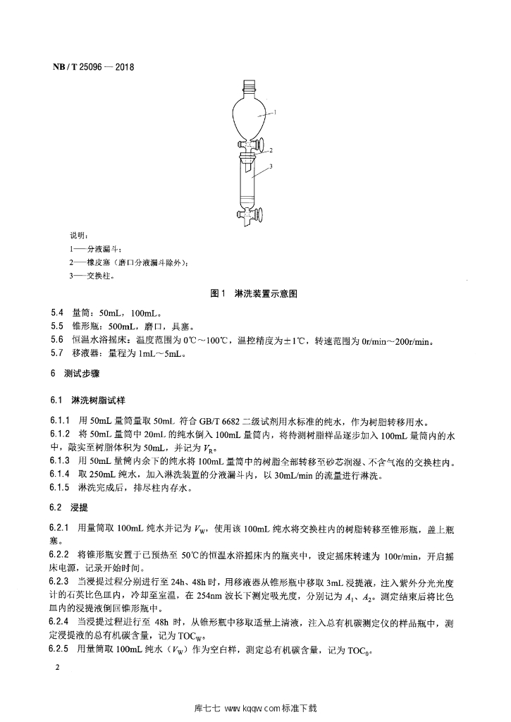 NB/T 25096-2018 核电厂用离子交换树脂有机溶出物的测定方法