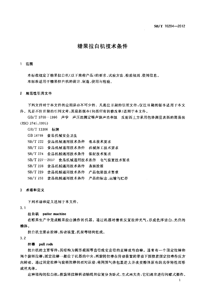 SB/T 10204-2012 糖果拉白机技术条件