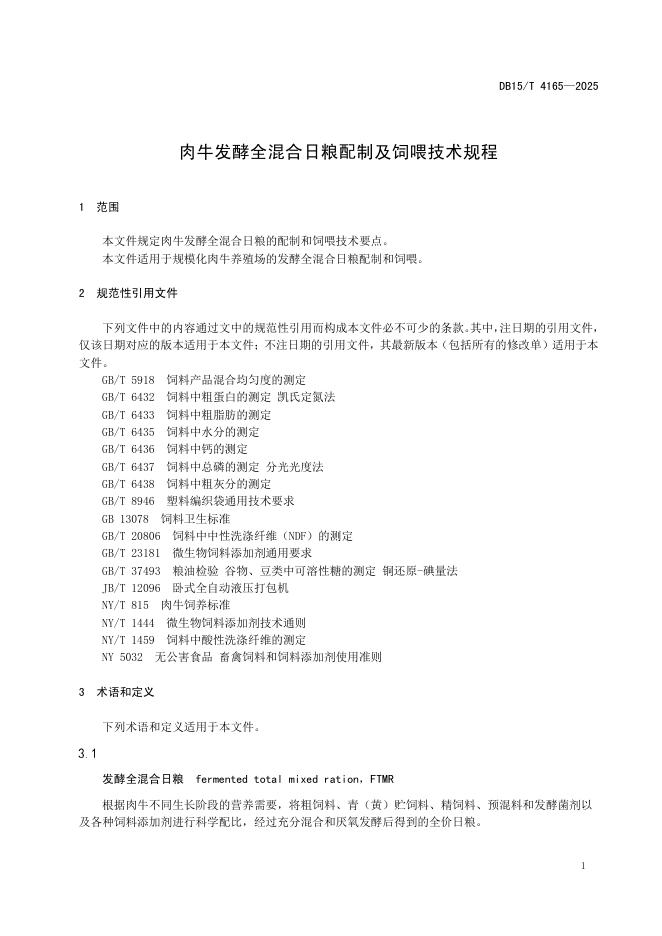 DB15/T 4165-2025 肉牛发酵全混合日粮配制及饲喂技术规程