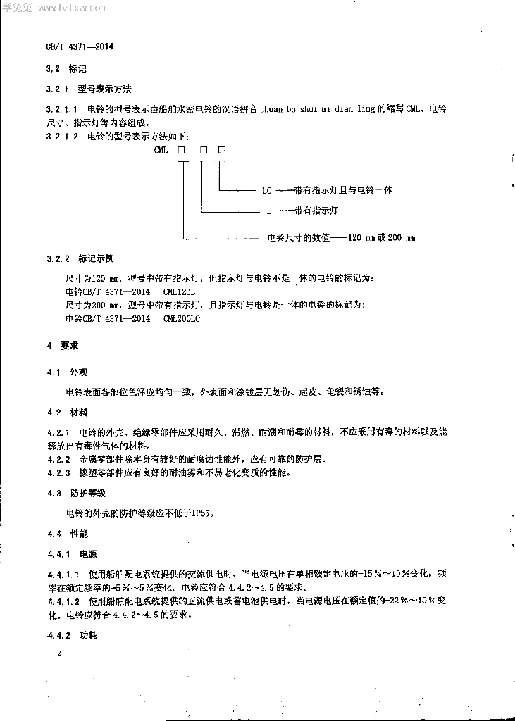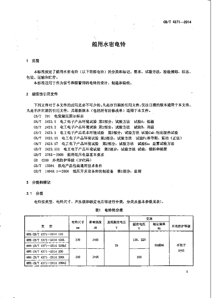 CB/T 4371-2014 船用水密电铃