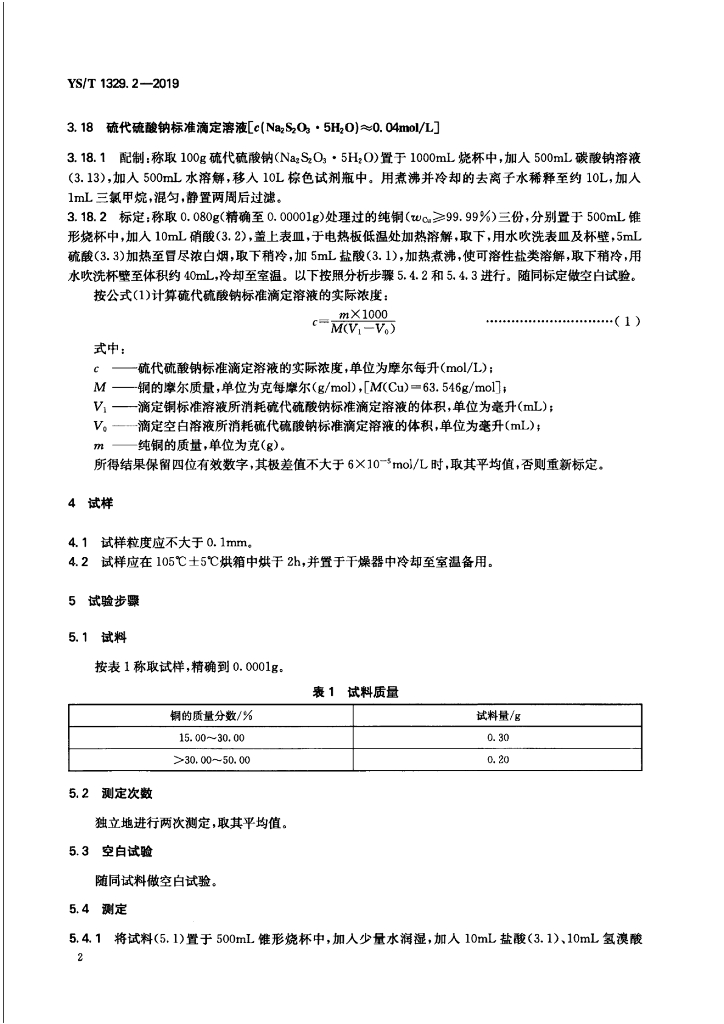YS/T 1329.2-2019 碲化铜化学分析方法 第2部分:铜含量的测定 碘量法