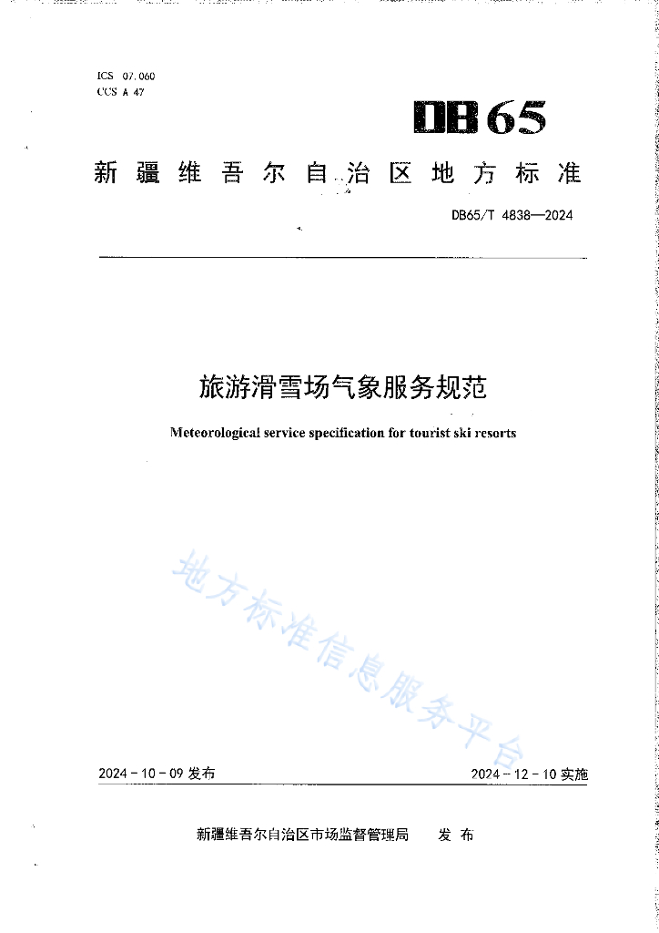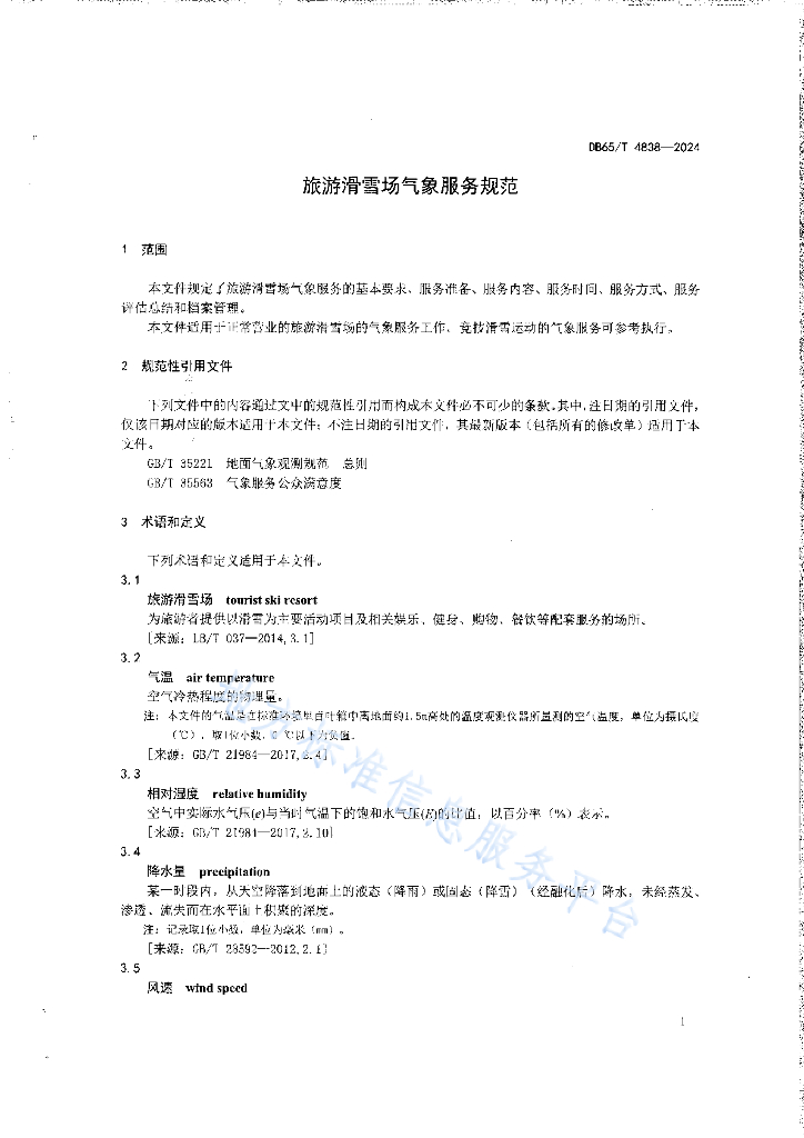 DB65/T 4838-2024 旅游滑雪场气象服务规范