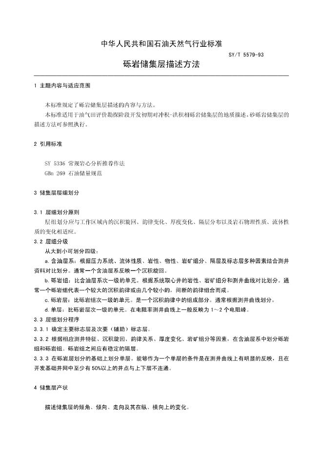 SY/T 5579-1993 砾岩储集层描述方法