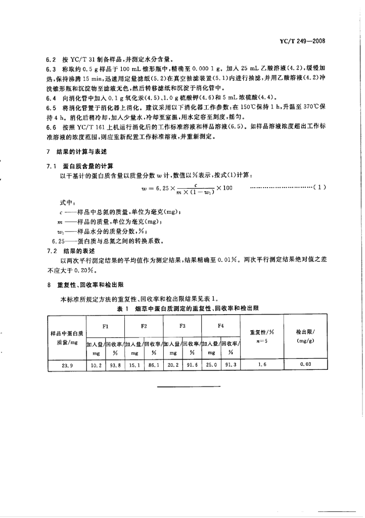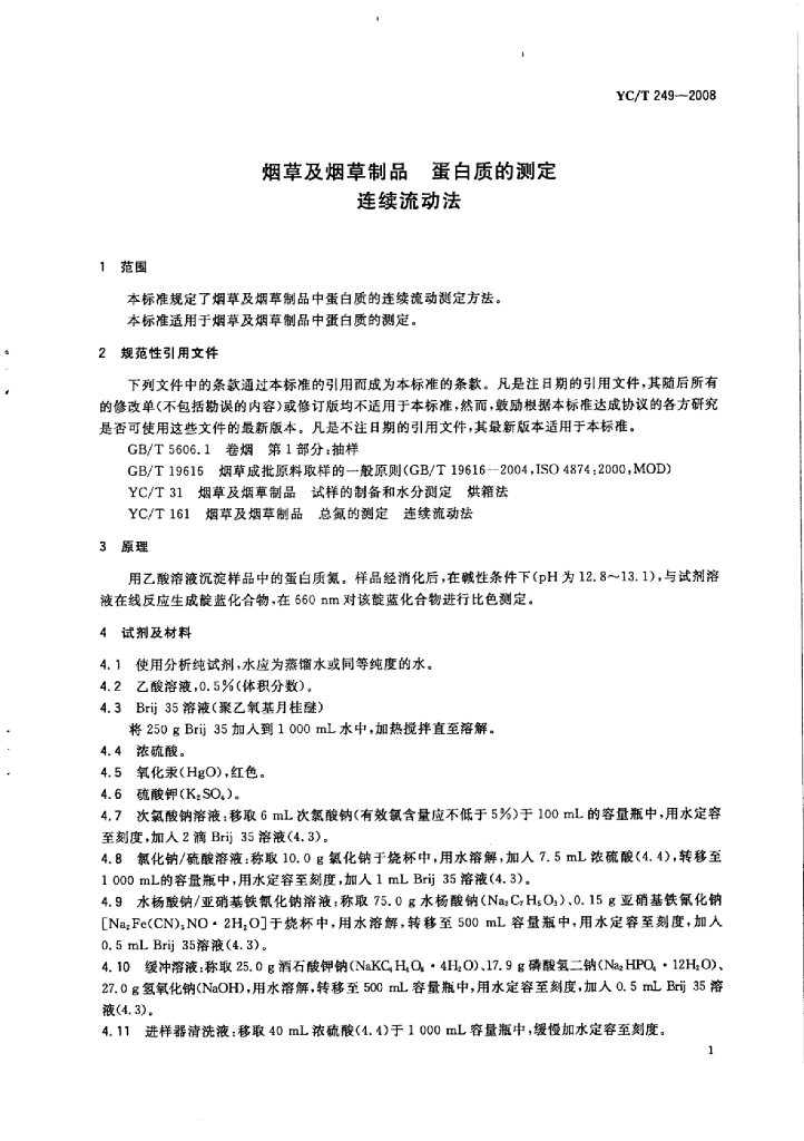 YC/T 249-2008 烟草及烟草制品蛋白质的测定 连续流动法