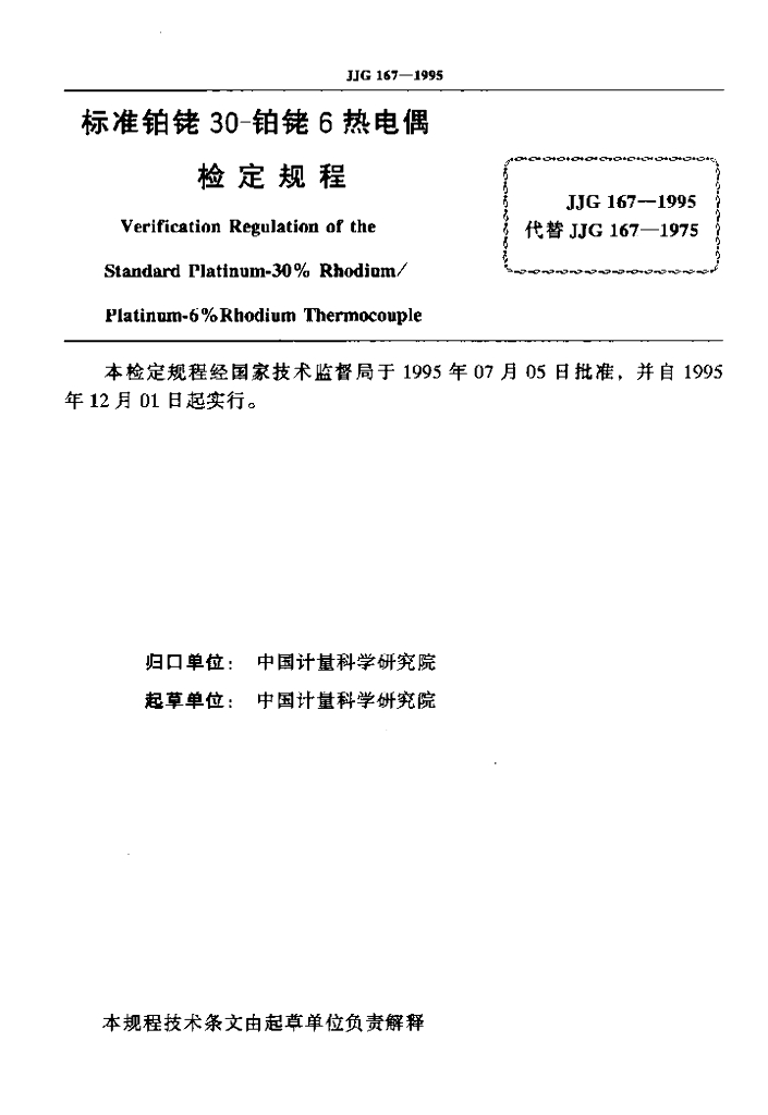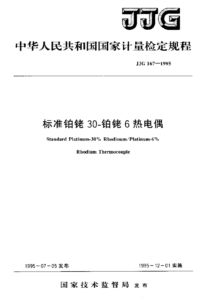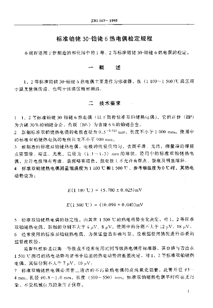 JJG 167-1995 标准铂铑30-铂铑6热电偶检定规程