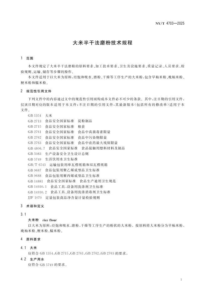 NY/T 4703-2025 大米半干法磨粉技术规程