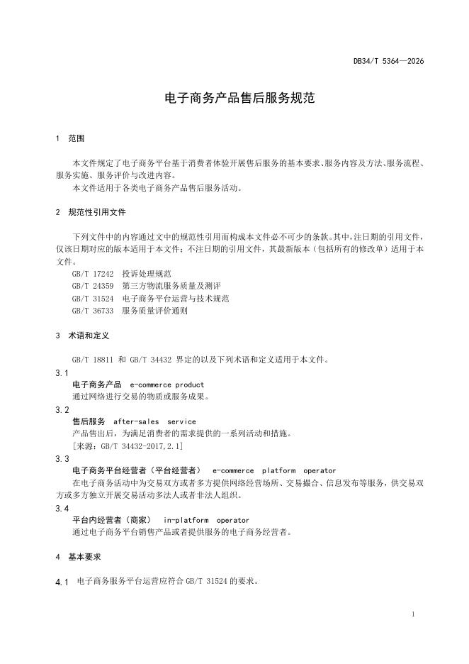 DB34/T 5364-2026 电子商务产品售后服务规范