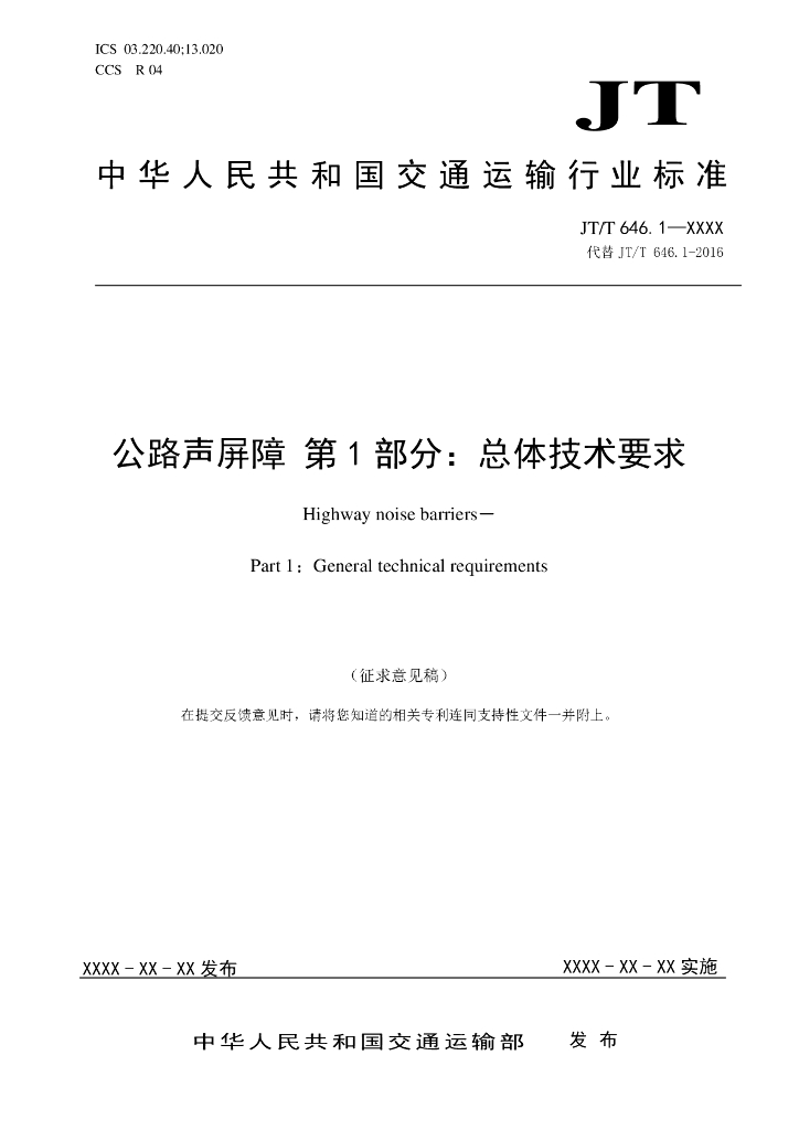 JT/T 646.1-2023 公路声屏障 第1部分:总体技术要求(征求意见稿)