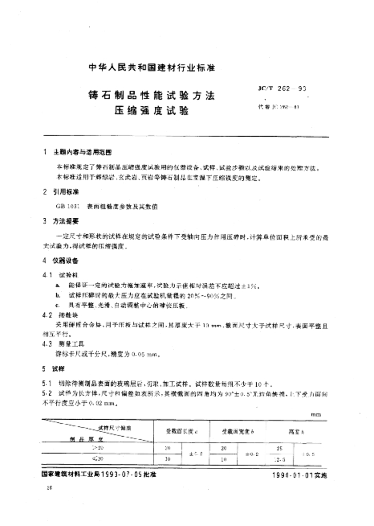 JC/T 262-1993 铸石制品性能试验方法 压缩强度试验