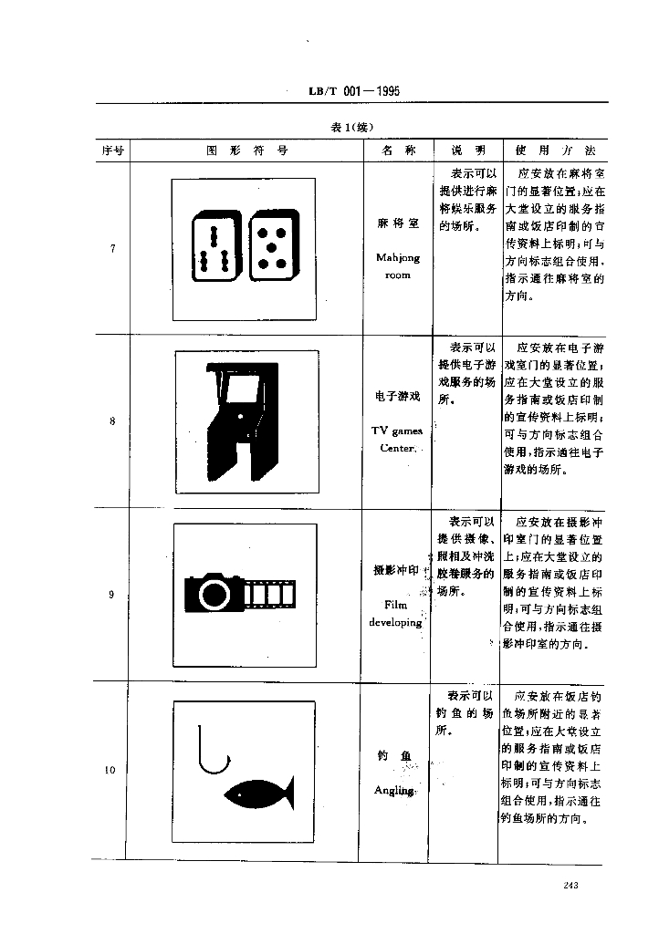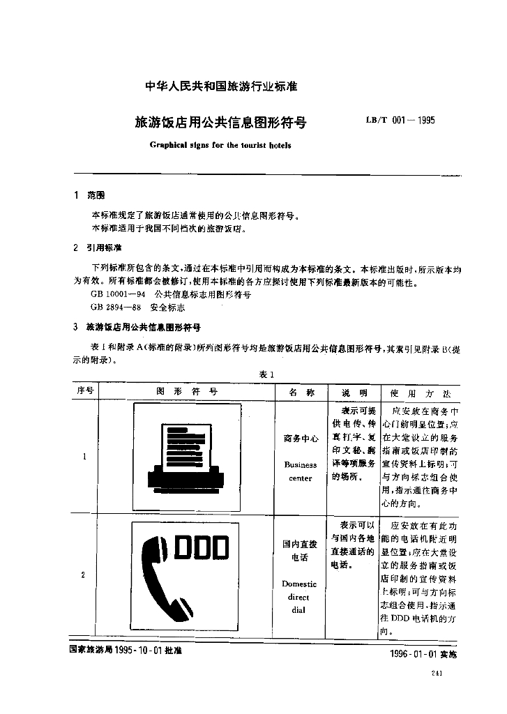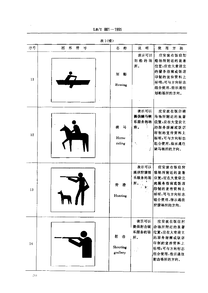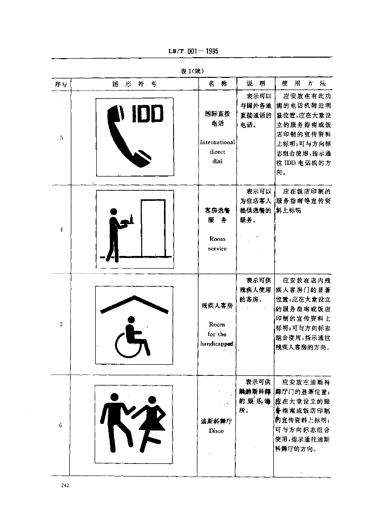 LB/T 001-1995 旅游饭店用公共住处图形符号