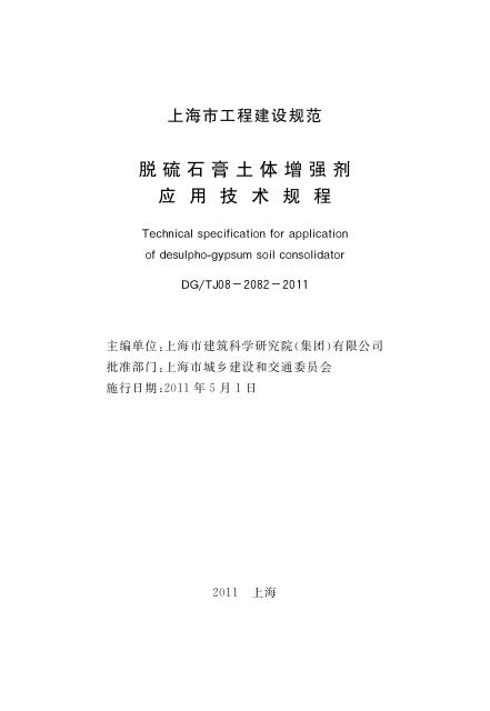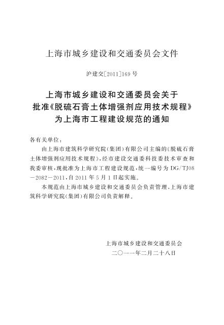 DG/TJ 08-2082-2011 脱硫石膏土体增强剂应用技术规程
