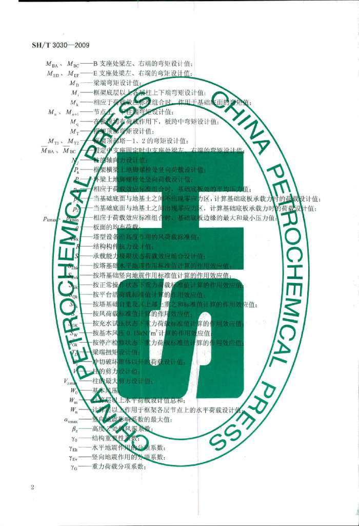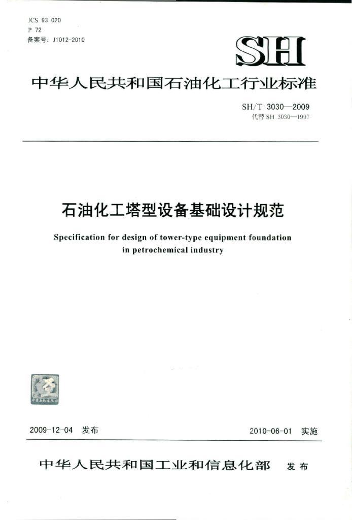 SH/T 3030-2009 石油化工塔型设备基础设计规范(附条文说明)