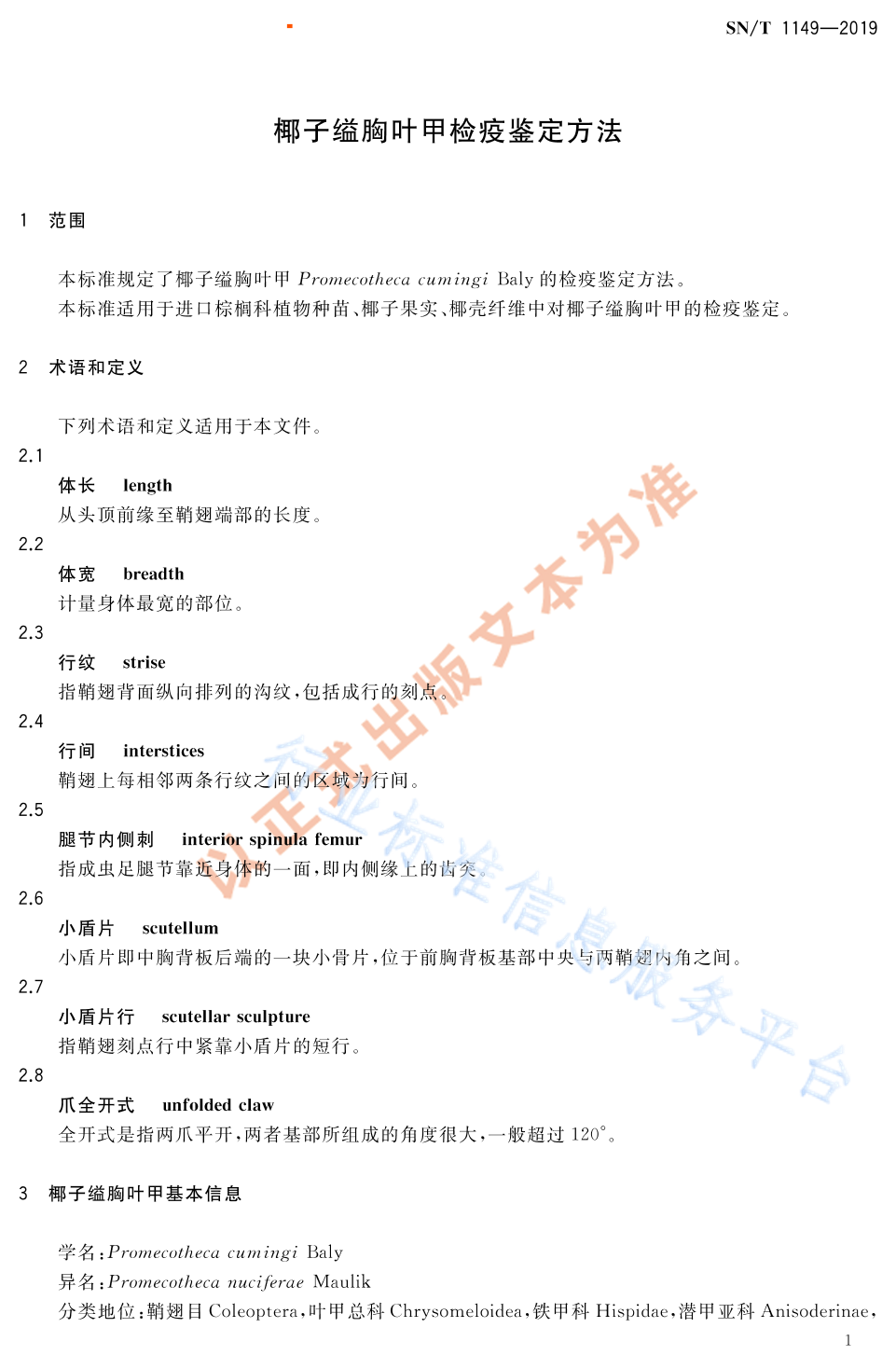 SN/T 1149-2019 椰子缢胸叶甲检疫鉴定方法
