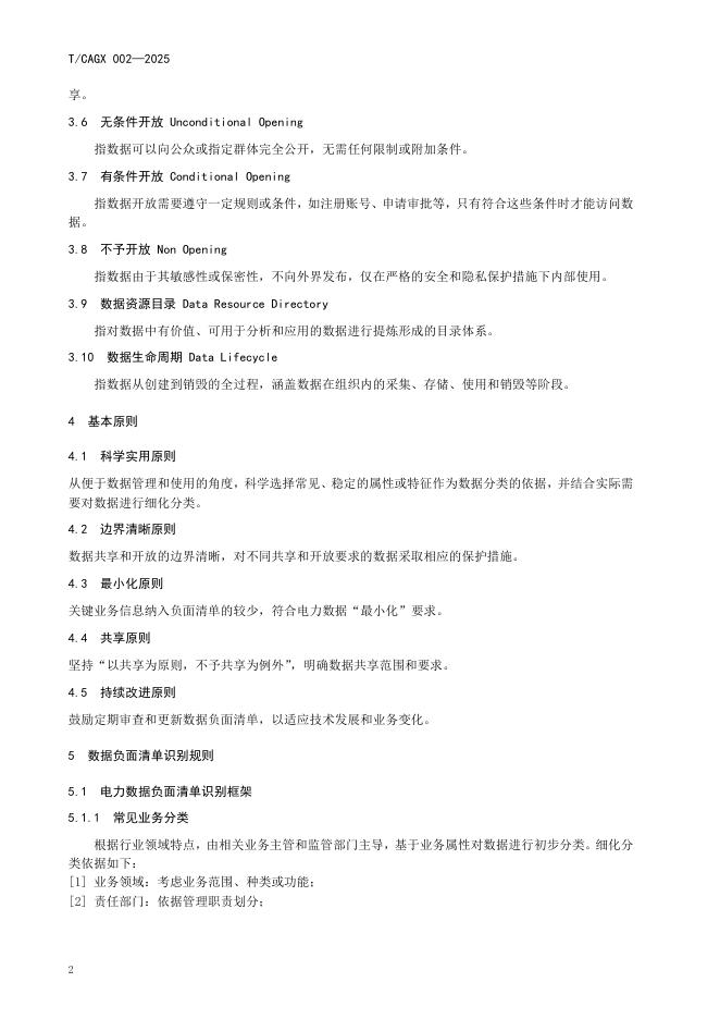 T/CAGX 002-2026 电力行业数据负面清单识别指南